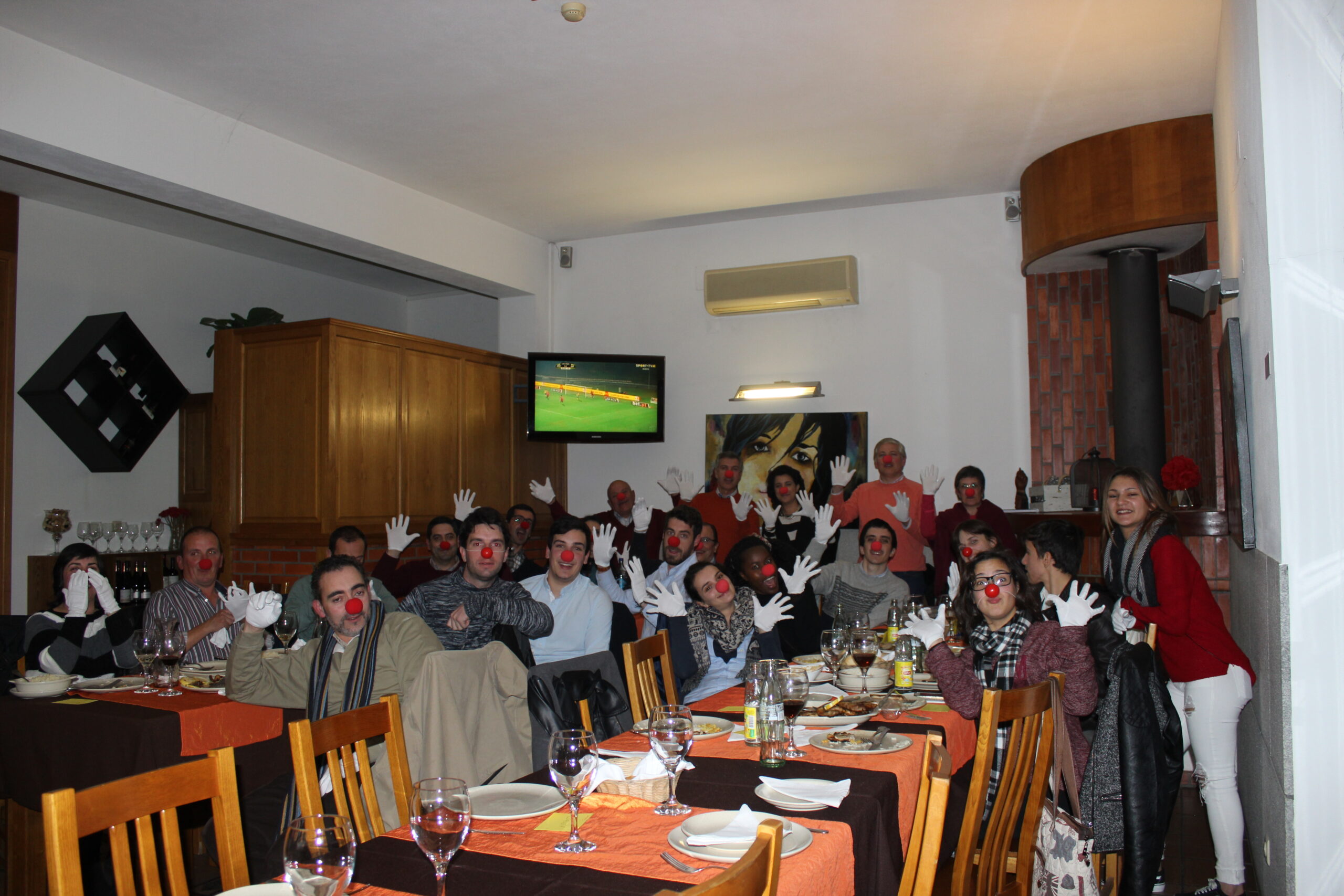 Trabalhando para as pessoas, o TEA inspira-se nelas mesmas para criar a sua própria atividade. Assim, durante o jantar, desafiou os presentes a colocar um nariz e umas luvas brancas e rir de si próprios alimentado o lema do grupo “rir e fazer rir”!