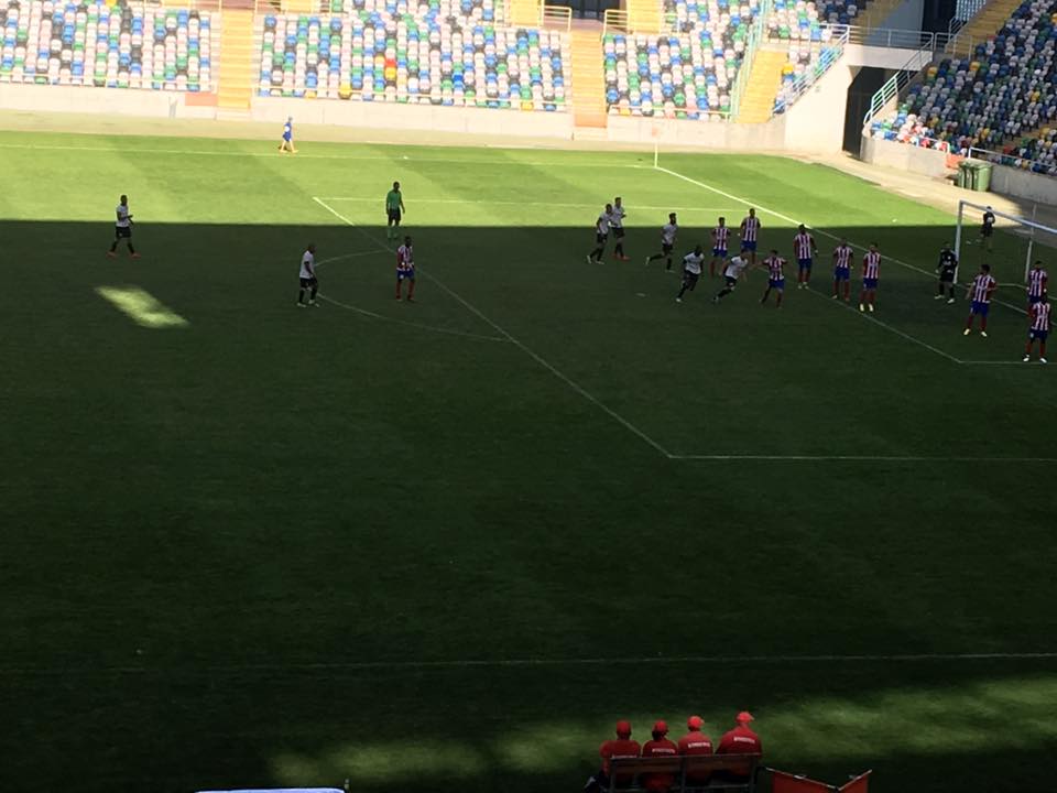 A primeira parte foi de grande domínio do Alvarenga e a equipa de Pedro Costa poderia ter resolvido a partida não fossem os postes, por duas ocasiões e o guarda redes do Esmoriz, com três boas intervenções, que não permitiram que tal acontecesse.