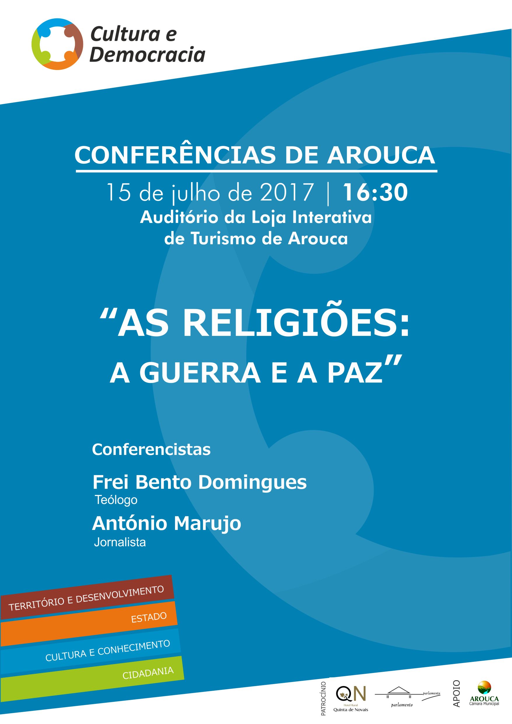 Amanhã, dia 15 de julho, a partir das 16h30, no auditório da Loja de Turismo de Arouca, realiza-se mais uma “Conferência de Arouca”, desta vez subordinada ao tema “As Religiões: a Guerra e a Paz”. Frei Bento Domingues e António Marujo são os oradores convidados do Círculo Cultura e Democracia.