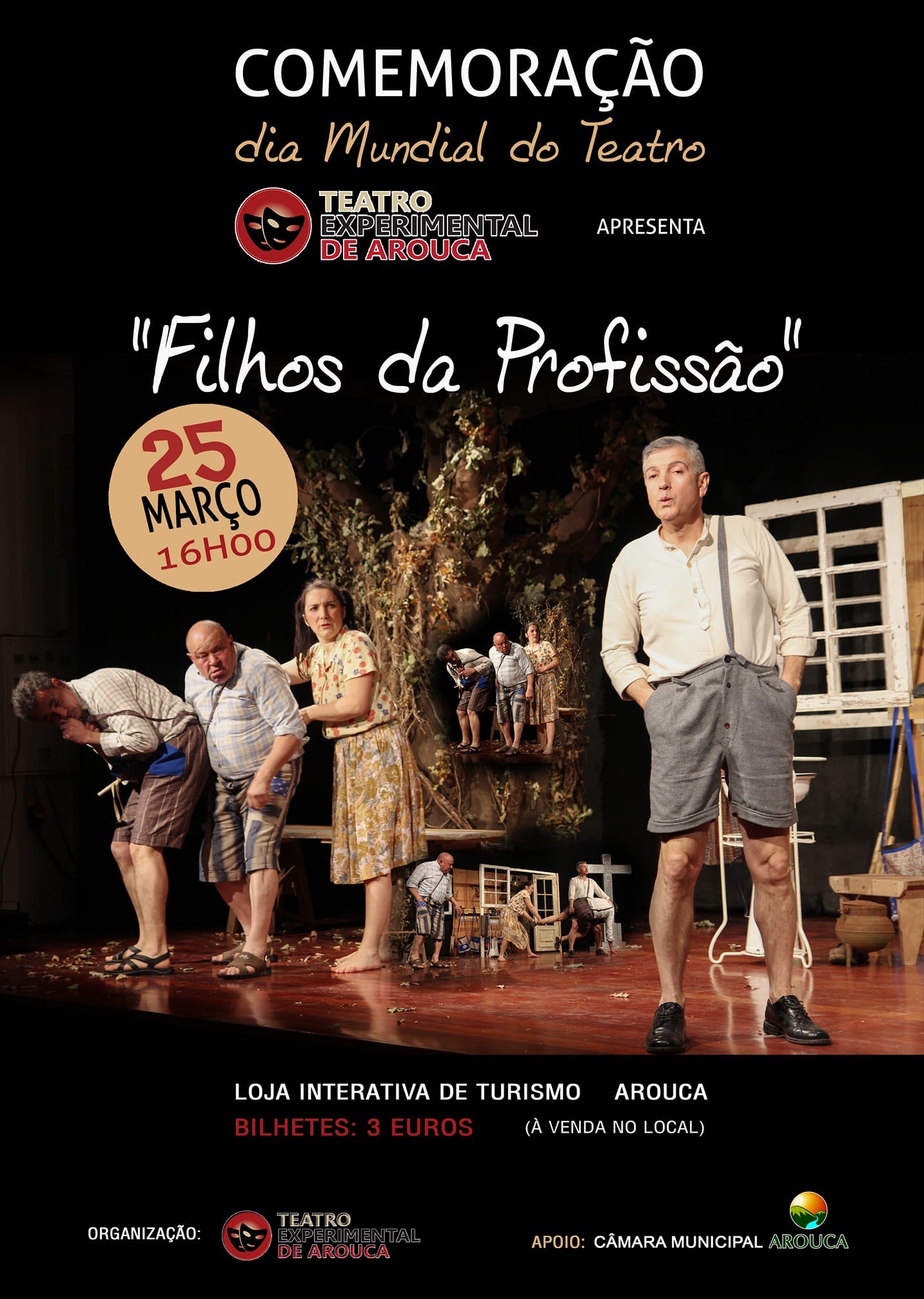 O Teatro Experimental de Arouca apresenta já este domingo, dia 25 de março, pelas 16h00, a peça de teatro ‘Filhos da Profissão’. Trata-se de uma iniciativa levada a cabo para assinalar o Dia Mundial do Teatro, comemorado anualmente a 27 de março.