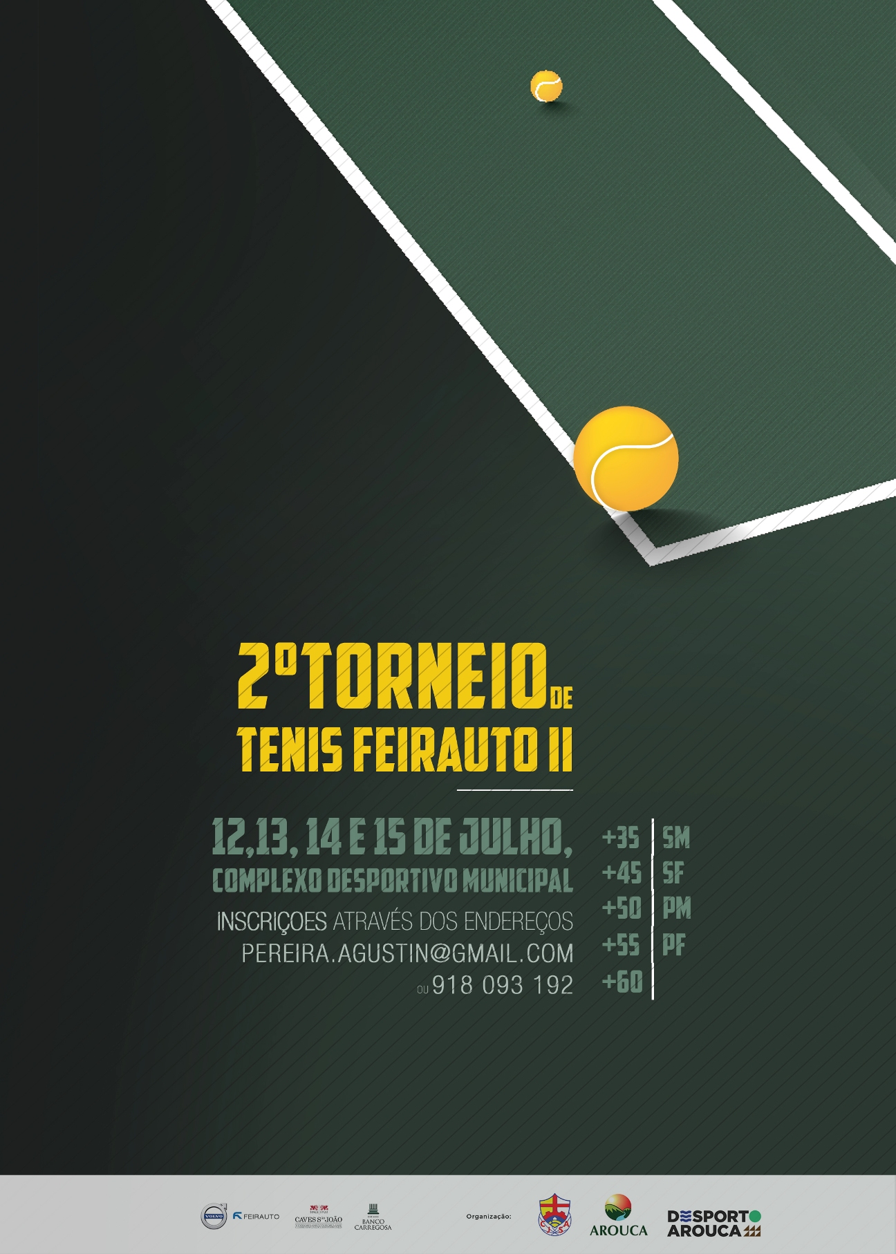 Os tenistas veteranos vão regressar aos ‘courts’ do Complexo Desportivo Municipal de Arouca de 12 a 15 de julho, para competir no Torneio de Ténis Feirauto II. Considerada uma das maiores manifestações de ténis em Arouca, este torneio contará com a presença de alguns dos melhores jogadores nacionais na categoria principal de veteranos. Informações/inscrições através do 918 093 192 ou do correio eletrónico pereira.agustin@gmail.com.