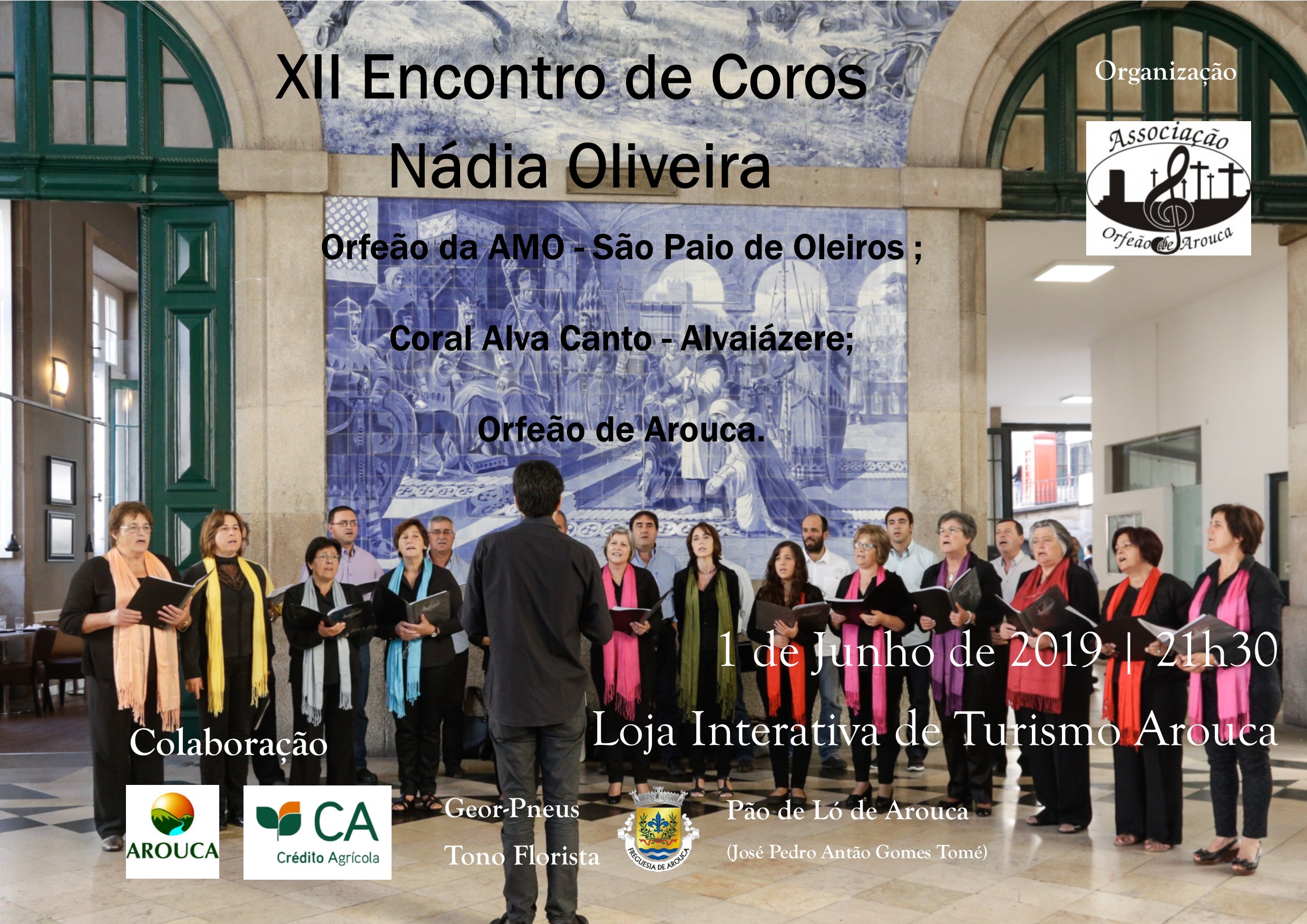O Orfeão de Arouca promove, como já vem sendo habitual, mais uma edição do Encontro de Coros Nádia Oliveira. O evento decorre este sábado, dia 1 de junho, às 21h30, na Loja Interativa de Turismo de Arouca, e conta com as atuações do Orfeão da AMO, de São Paio de Oleiros; Coral Alva Canto, de Alvaiázere; e Orfeão de Arouca.