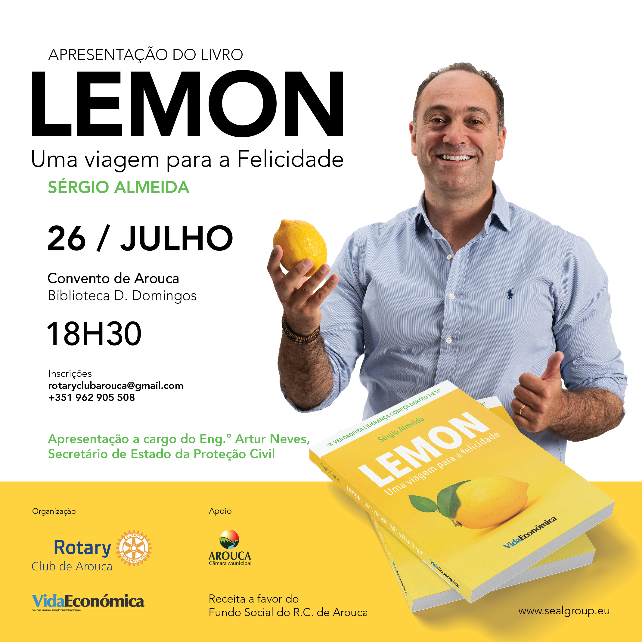 Sérgio Almeida, arouquense, lança o seu primeiro livro “LEMON – Uma viagem para a felicidade” trazendo uma abordagem fresca e profunda sobre o desenvolvimento pessoal e a felicidade individual num contexto de mudança. A sessão acontece esta sexta-feira, dia 26 de julho, às 18h30, no Mosteiro de Arouca, e as receitas das vendas revertem para o fundo social do Rotary Club de Arouca.