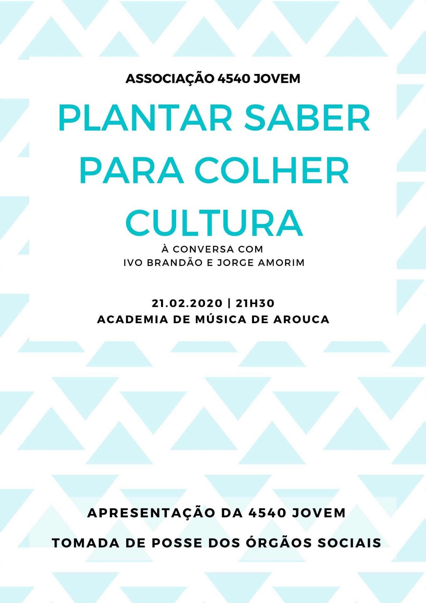 As principais linhas estratégicas da associação são a cultura e o ambiente. Amanhã, às 21h30, no auditório da Academia de Música de Arouca, a ‘4540 Jovem’ promove também a sua primeira atividade, enquanto associação legalmente constituída. Jorge Amorim, do projeto Matéria Prima, e o músico Ivo Brandão são os arouquenses convidados para a conversa ‘Plantar saber para colher cultura’, onde se vai falar sobre ambiente, cultura e património. Em debate estará o que já foi feito e o que ainda se pode fazer em Arouca pela cultura e pelo ambiente.