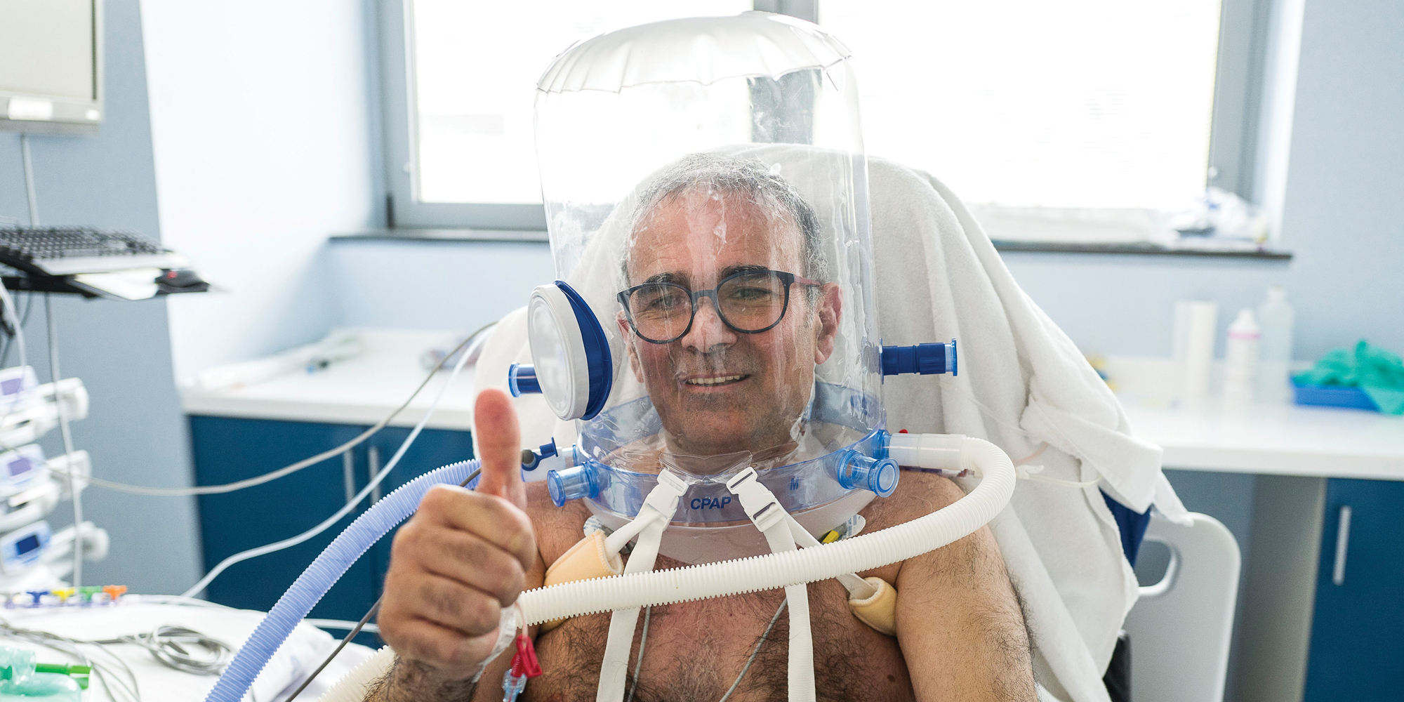 Nesses pacientes, em que o “helmet” travou o avanço da dificuldade respiratória, o tempo de internamento nos cuidados intensivos também diminuiu para cerca de um terço do habitual.