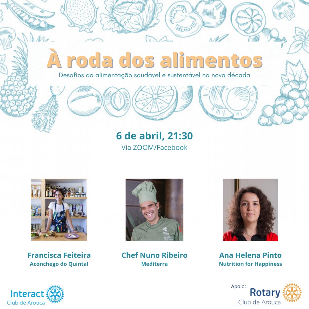 Deste modo, o Interact Club de Arouca vai realizar uma tertúlia online, com o apoio do Rotary Club de Arouca, amanhã, dia 6 de abril pelas 21h30. Com a participação da Francisca Feiteira, dona do Aconchego do Quintal, do Chef Nuno Queiroz Ribeiro e da Ana Helena Pinto, nutricionista e fundadora da Nutrition for Happiness, a tertúlia desenrolar-se-á em torno do tema do impacto da alimentação no ambiente, assim como na forma como os hábitos alimentares estão a mudar e terá como título “À Roda dos Alimentos – Desafios de uma alimentação saudável e sustentável na nova década”.