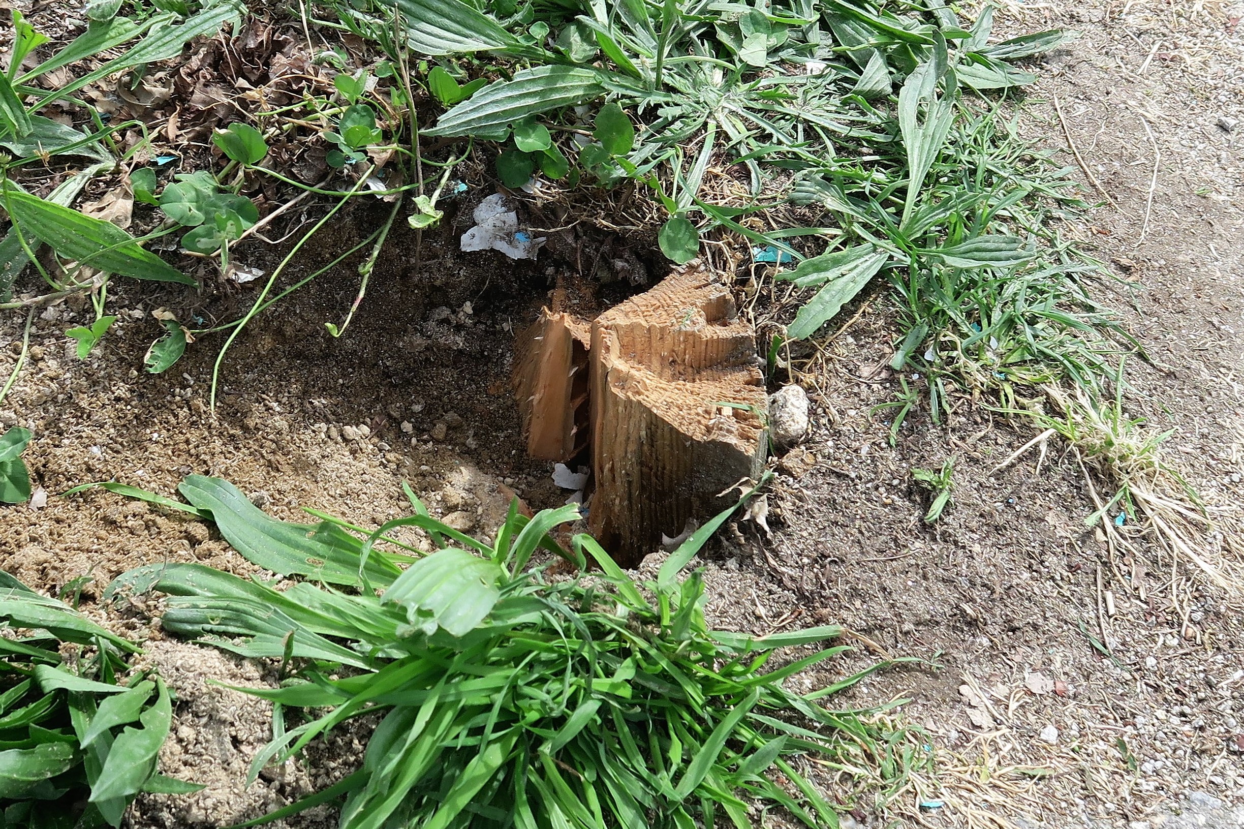 A queda do poste de suporte de uma rede de vedação aconteceu sem qualquer ação mecânica ou por força de um temporal. O poste simplesmente partiu a traquete porque estava podre como prova a foto tirada no local, no dia do acidente.