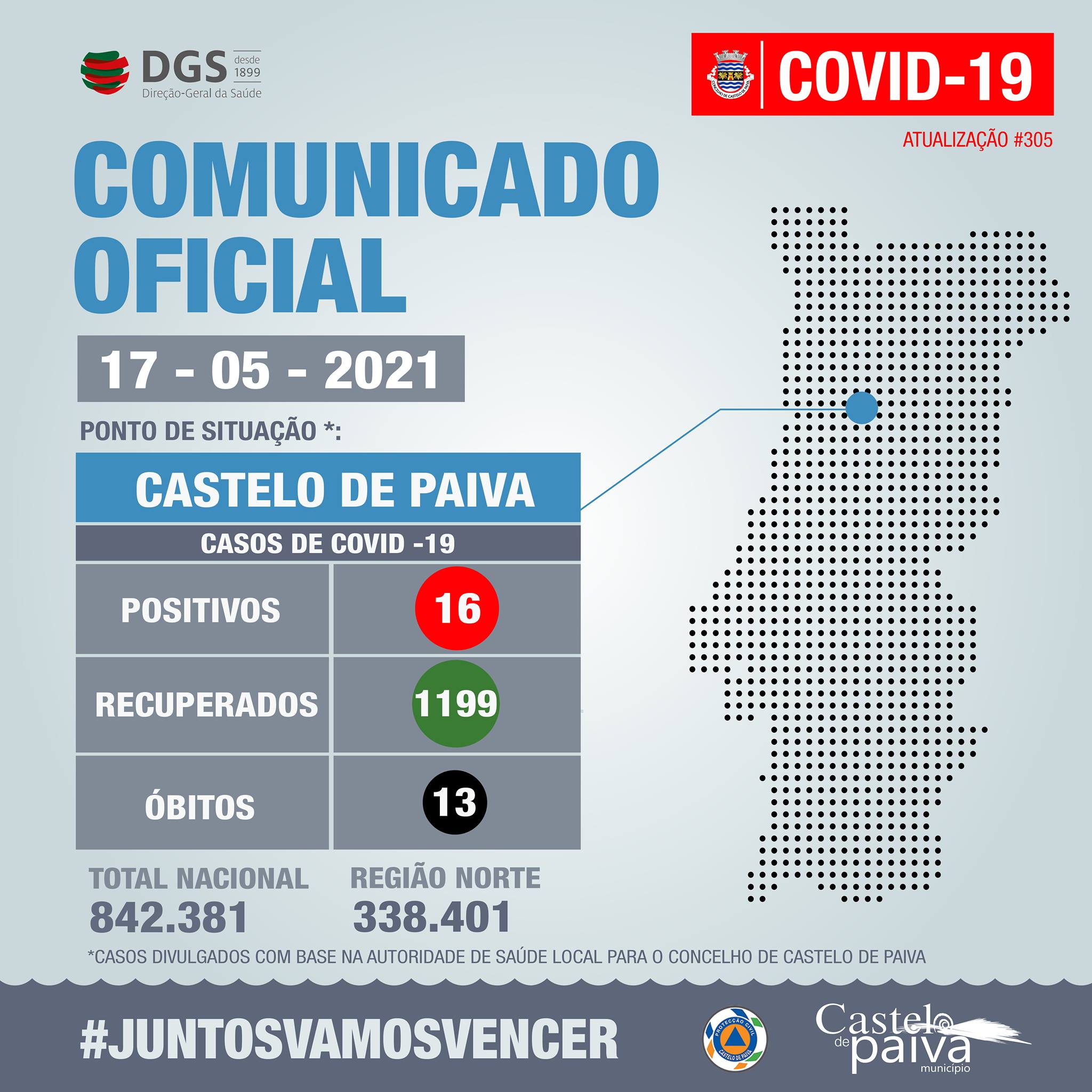 Castelo de Paiva continua a fazer parte dos concelhos em “Alerta”, com mais de 120/240 casos de taxa de incidência.