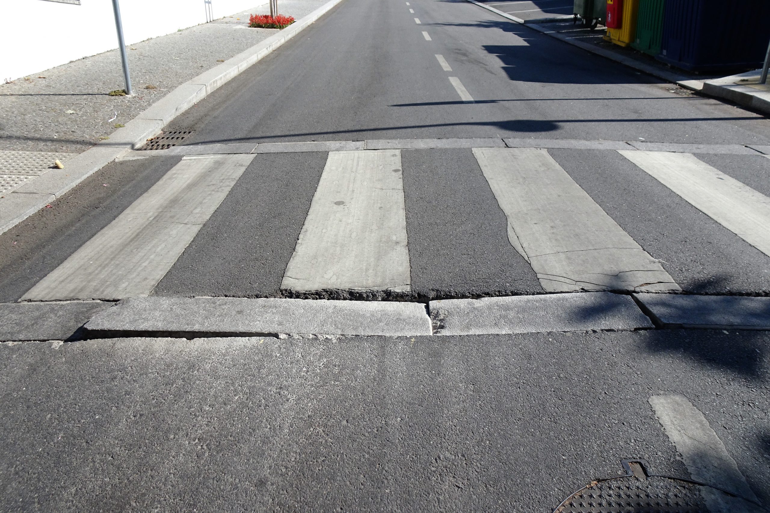 As guias de granito da passadeira à entrada da urbanização de S. Pedro estão num estado lastimável, que a foto documenta, e já provocaram inclusive a queda de um motociclista, felizmente sem danos de maior. Isto para não falar da deterioração das suspensões dos carros de quem lá mora e todos os dias sai e entra no bairro. Vários moradores já contactaram a Câmara, alguns mais que uma vez, e a resposta é sempre a mesma: “A obra tem garantia e a responsabilidade é do empreiteiro”. E andamos nisto há mais de meio ano. Quem por lá passa, sem se desviar da armadilha, solta uns sonoros palavrões e já se está a ver a quem são dirigidos.