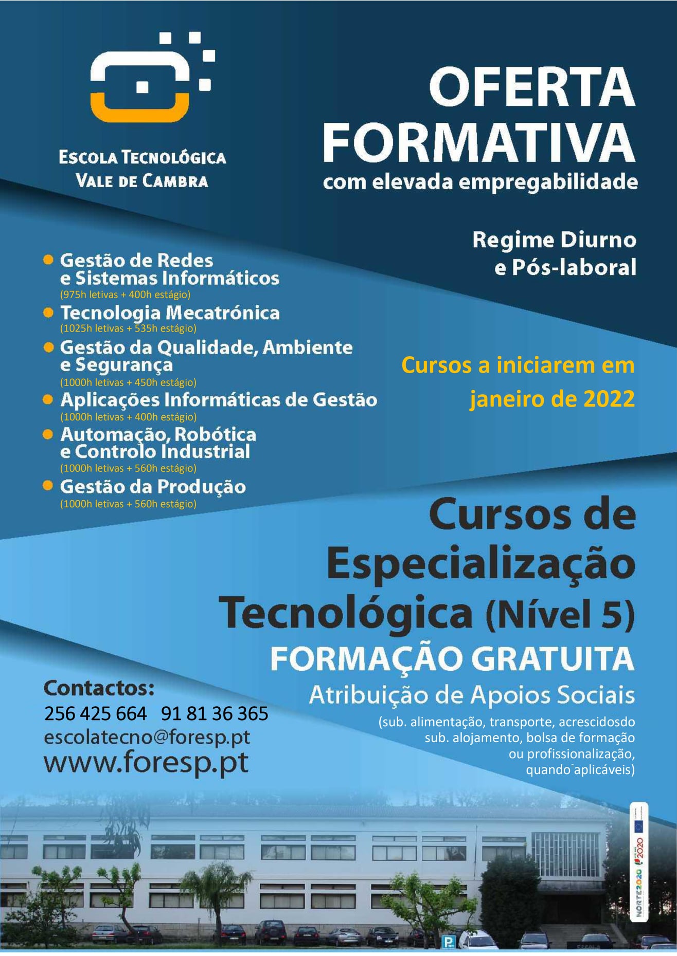 A Escola Tecnológica de Vale de Cambra “Forest” abriu inscrições para formações pós-laborais, que vão iniciar em janeiro de 2022. Os CEt´s são formações pós-secundárias e não superiores que visam conferir qualificação profissional do nível 5.
