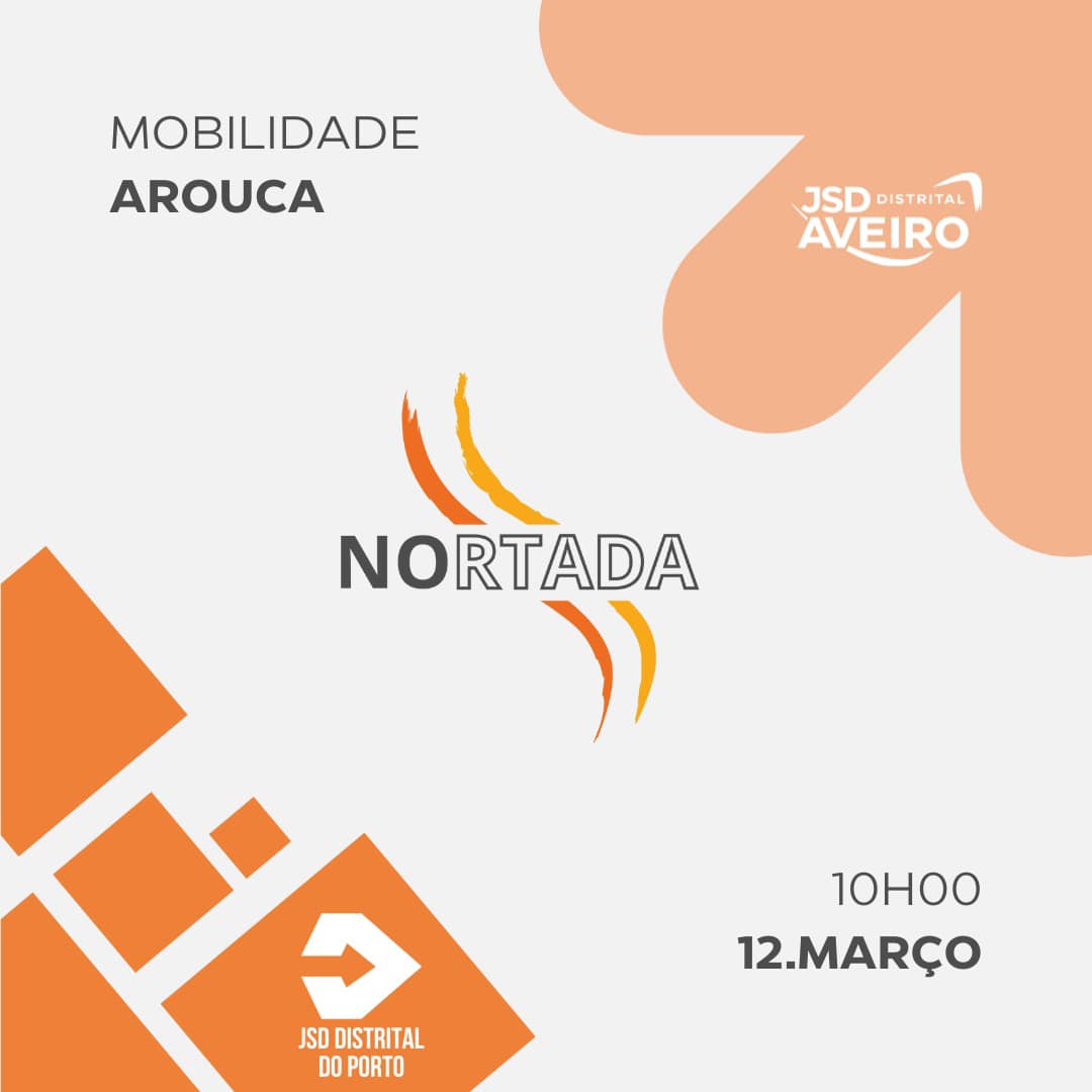 O evento “Nortada” organizado pela JSD Distrital de Aveiro, e JSD Distrital do Porto, vai ocorrer em Arouca, no Auditório dos Bombeiros Voluntarios , para se debater a temática da mobilidade, sendo acolhido pela JSD concelhia. (cartaz em anexo)