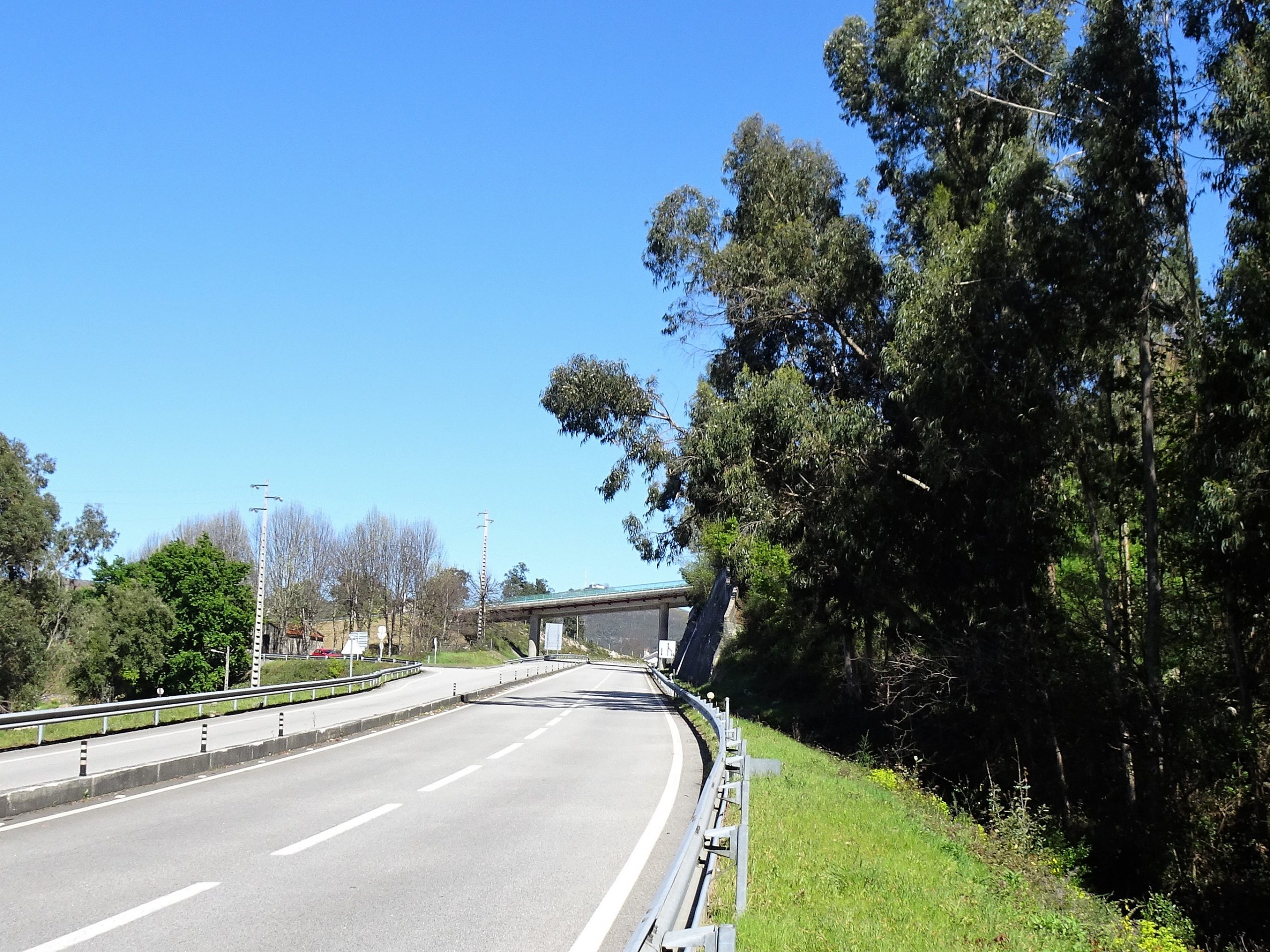 O eucalipto que a foto documenta, debruçado sobre uma das faixas da variante frente à capela de Santo Aleixo, ameaça cair sobre a via o que constitui uma ameaça para quem lá passa.