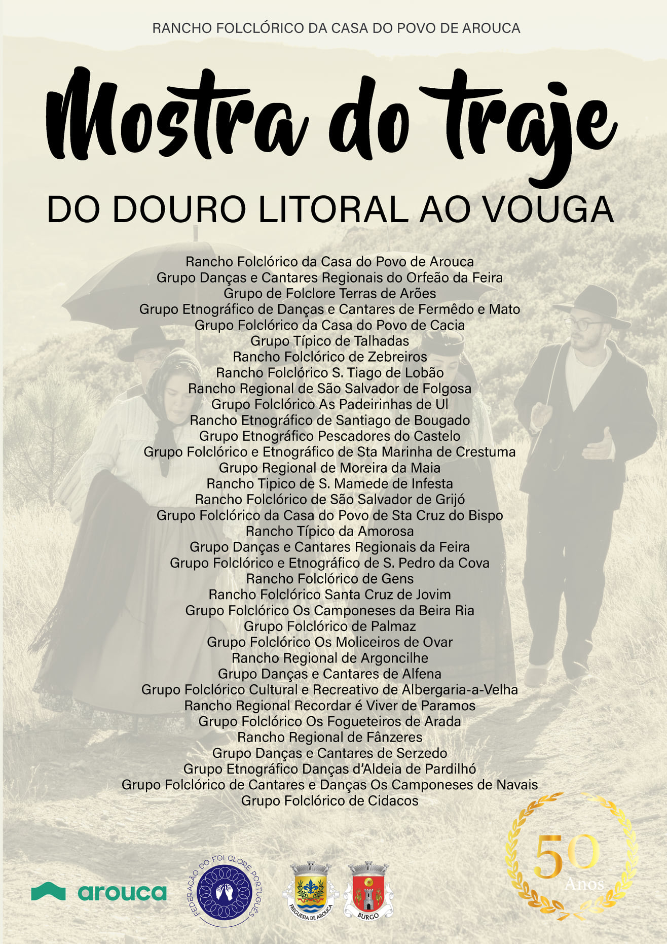 O DD divulga em anexo (foto) os grupos participantes na Mostra do Traje do “Douro Litoral ao Vouga”,, a ocorrer já no próximo dia 1 de maio, com um total de 264 figurantes.