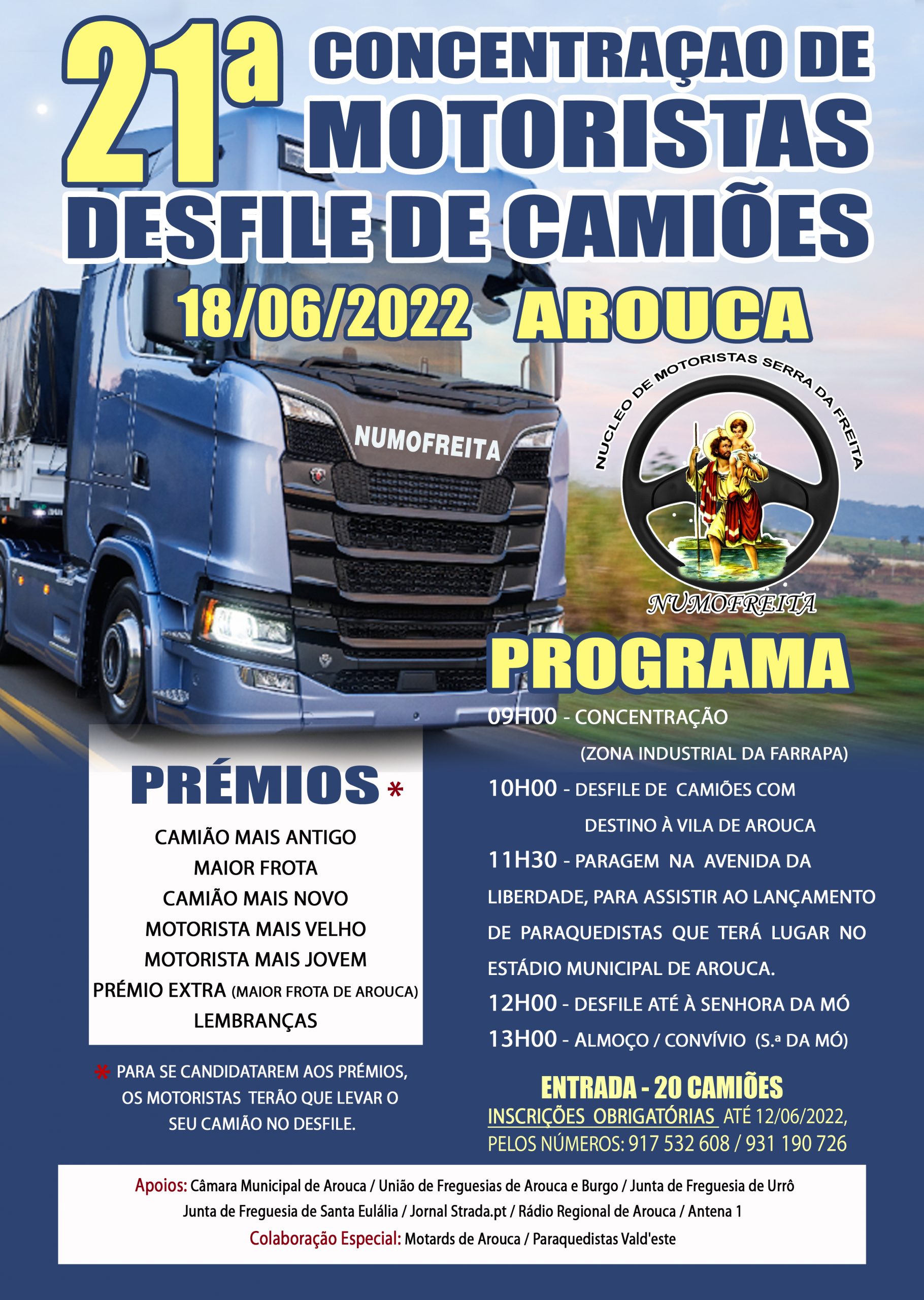 O Núcleo de Motorista Serra da Freita (Numofreita) vai realizar, no próximo dia 18 de junho, a 21ª concentração de motoristas e Desfile de Camiões de Arouca.