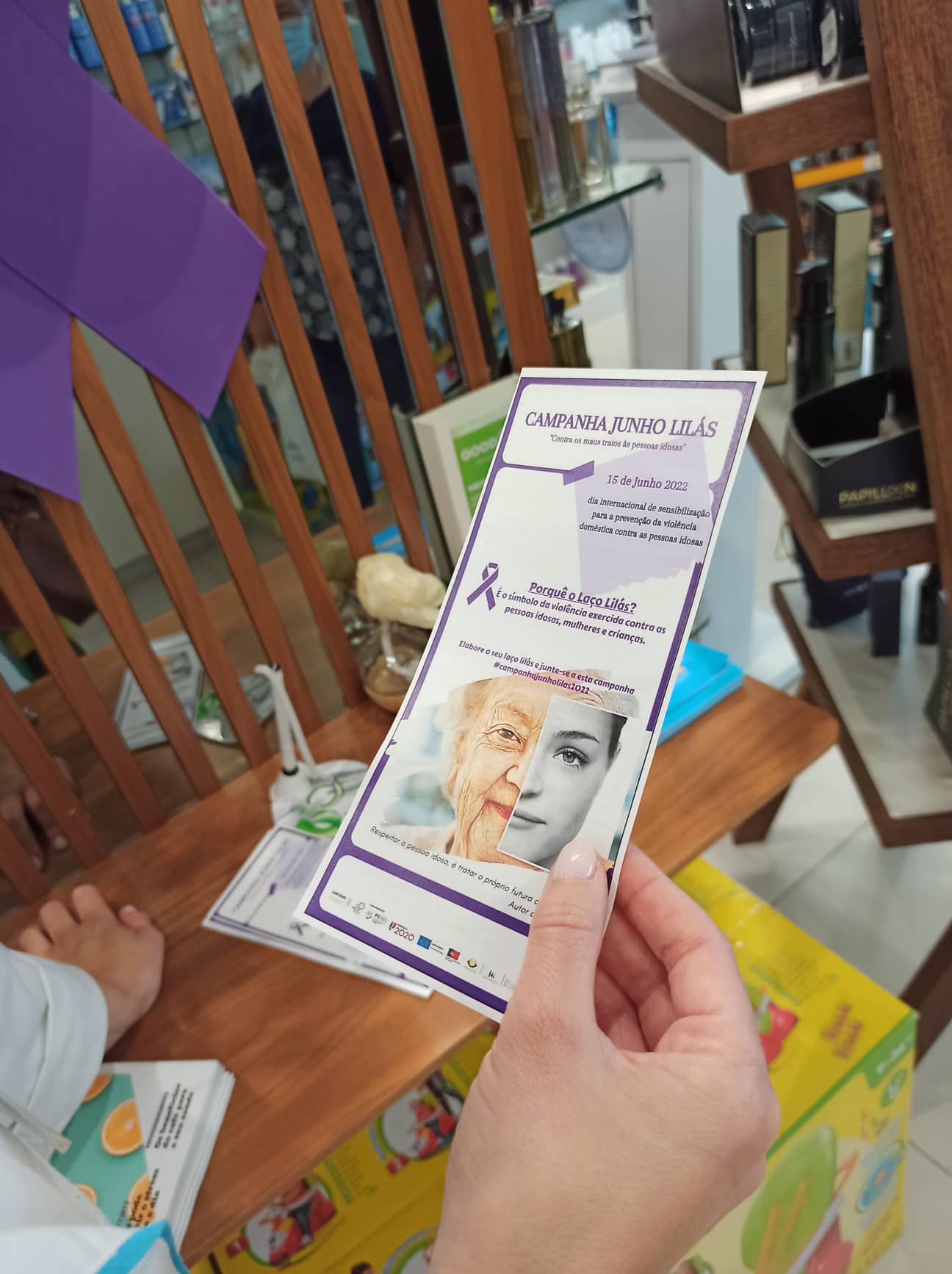 A Câmara Municipal aderiu assim espalhando, pela rede do cartão do idoso, laços de cor lilás e panfletos sobre a temática com informações úteis a toda a comunidade local.