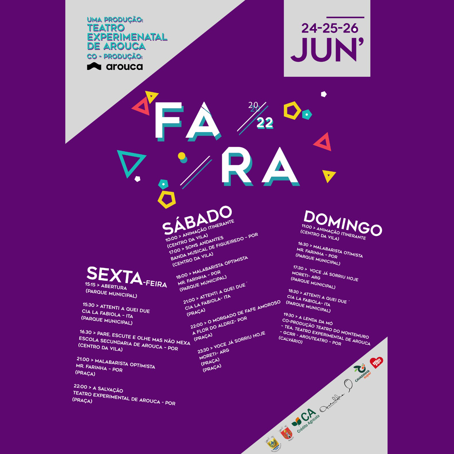 As artes performativas voltam a sair à rua este fim de semana pelo FARA-Festival de Artes de Rua de Arouca, decorrendo de dia 24 a 26 de junho, no centro histórico de Arouca. Vão estar presentes artistas e companhias de três países diferentes, tais como Portugal, Itália e Argentina.