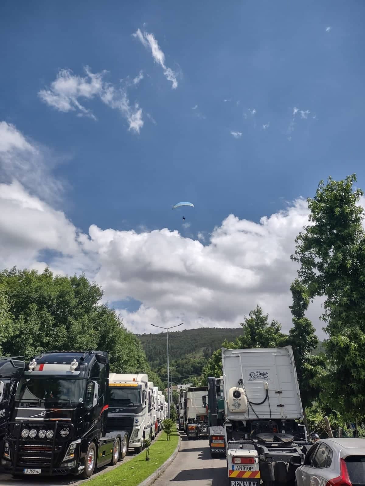 Os Paraquedistas de Vald`este animaram a manhã, junto ao Estádio Municipal, e o almoço convívio, que estava marcado para a Senhora da Mó, por razões meteorológicas, teve de ser realizado nos Bombeiros Voluntários de Arouca.
