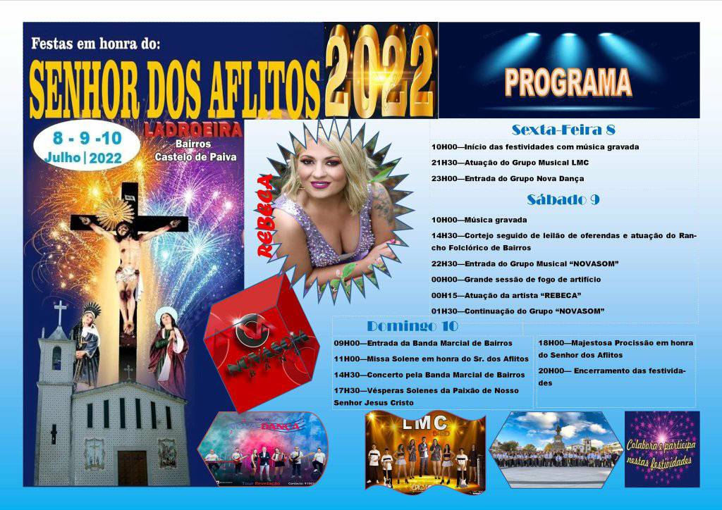 No fim de semana de 8,9 e 10 de julho, decorre a habitual festa em honra do Senhor dos Aflitos, na Ladroeira, em Bairros, depois de 2 anos de pausa devido à pandemia.