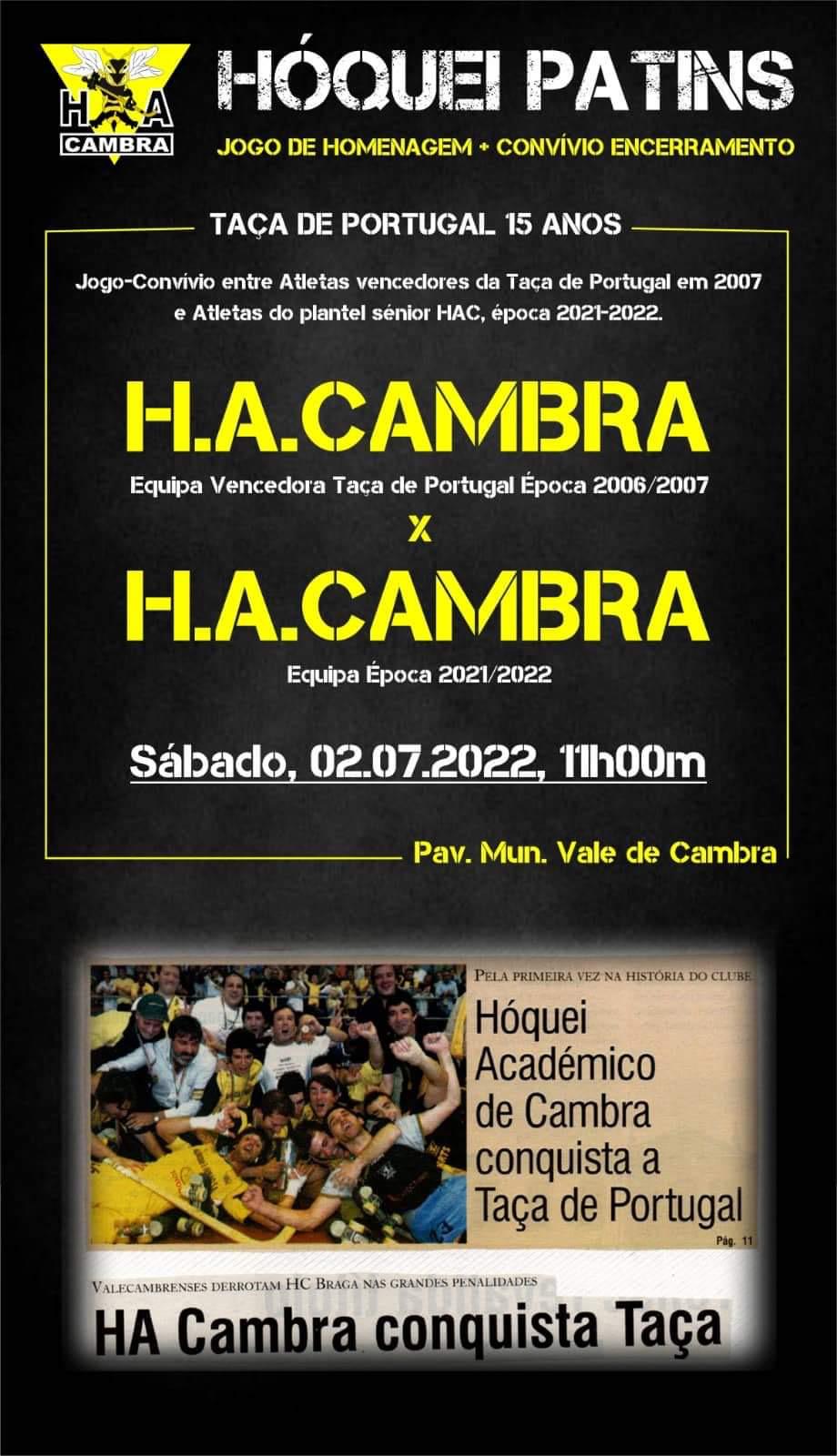No passado sábado, dia 2 de julho, realizou-se o jogo de homenagem ao plantel que em 2007, conquistou a Taça de Portugal. O jogo-convívio de hóquei em patins, foi entre atletas vencedores da Taça de Portugal em 2007 e os atletas do plantel sénior H.A.Cambra, da época 2021/2022.