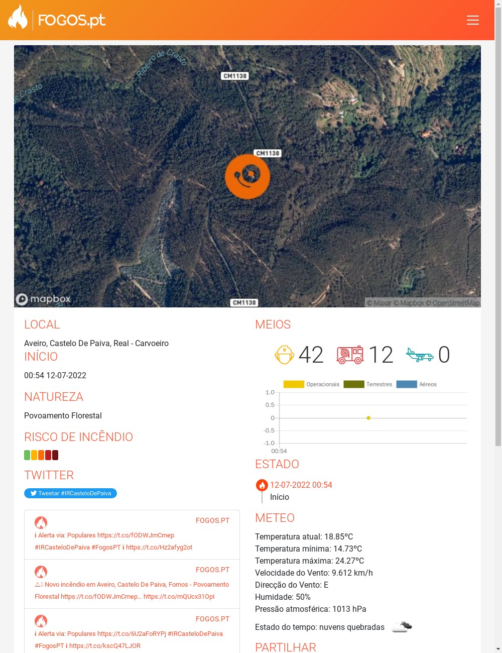 Passava pouco da 00h30, quando na estrada que liga Ladroeira (Bairros) até Santo Adrião (Real) ocorriam 3 focos de incêndio, sendo 2 deles já com grande intensidade.