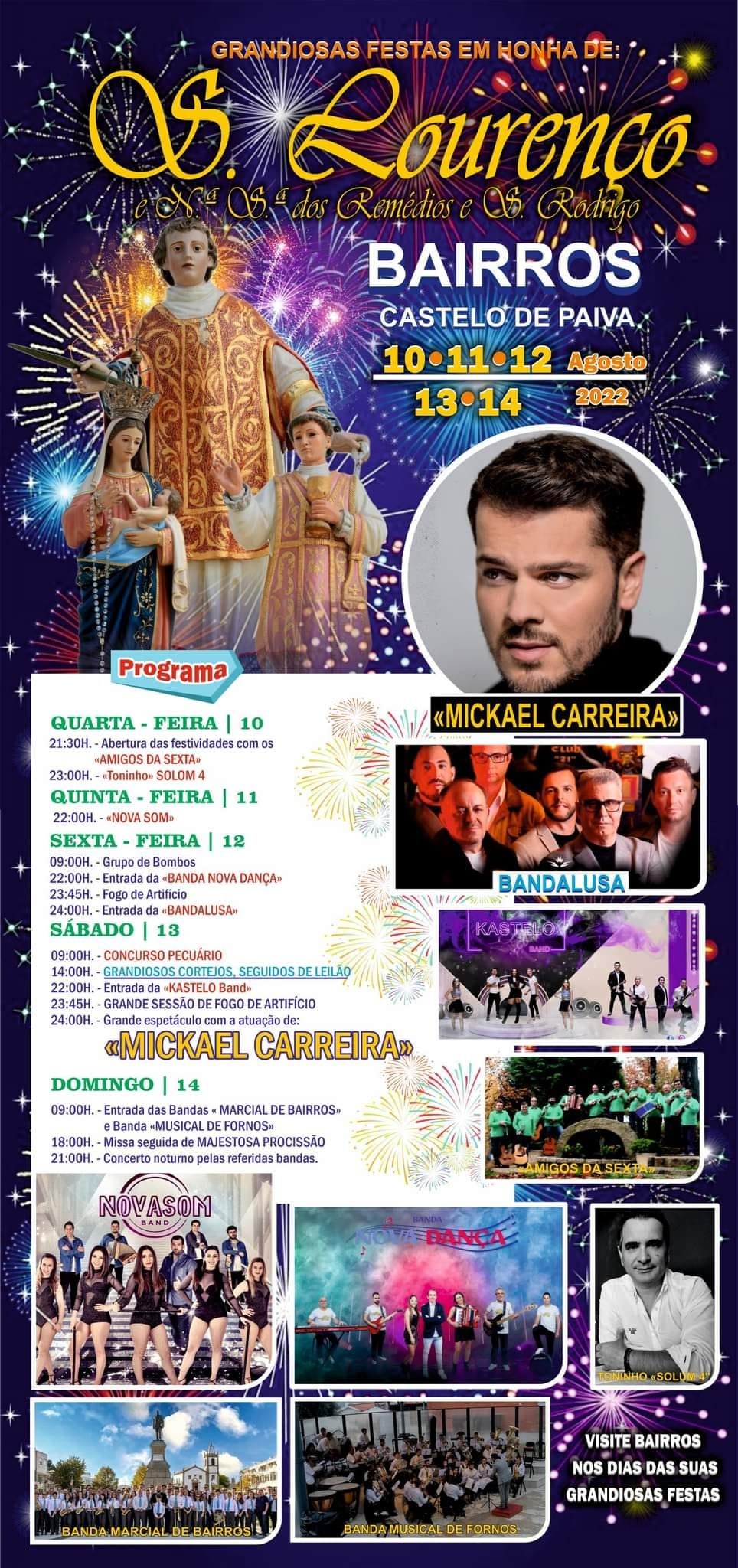 Ao contrário daquilo que acontecia em anos anteriores, as festas em honra de São Lourenço, em Bairros, este ano são celebradas de 10 a 14 de agosto.