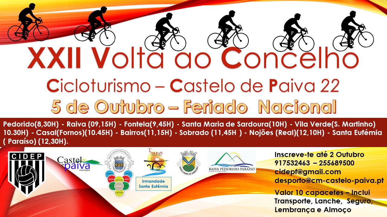 Trata-se da XXII Volta ao Concelho em Cicloturismo e é uma iniciativa organizada pelo CIDEP/Fornos, Santa Maria de Sardoura e Raiva, Pedorido e Paraíso, assim como a Irmandade da Santa Eufémia.