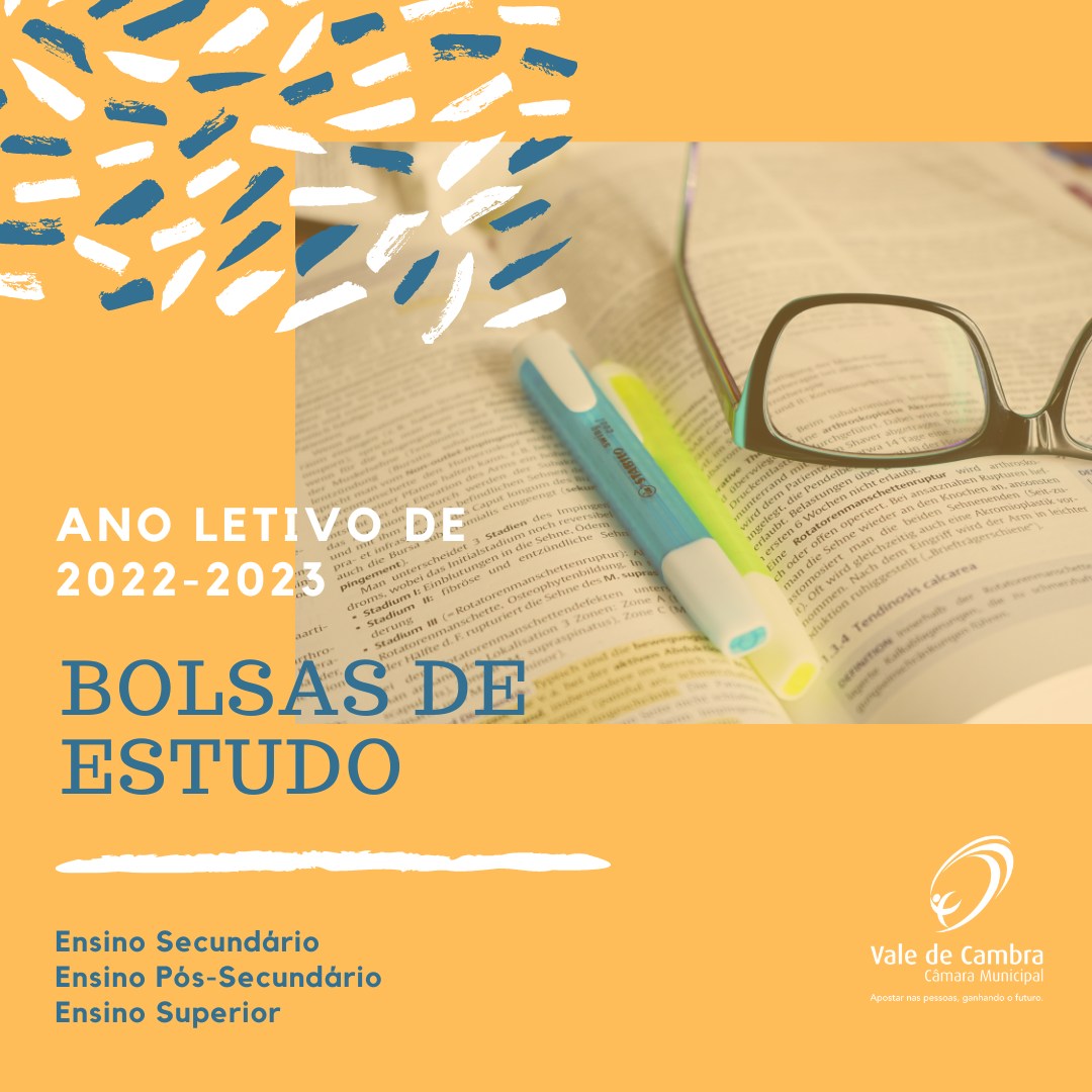 O período de candidaturas a Bolsas de Estudo decorre até dia 20 de outubro, para os alunos do Ensino Secundário, Ensino Pós-Secundário e Ensino Superior para o ano letivo de 2022/2023, em Vale de Cambra.