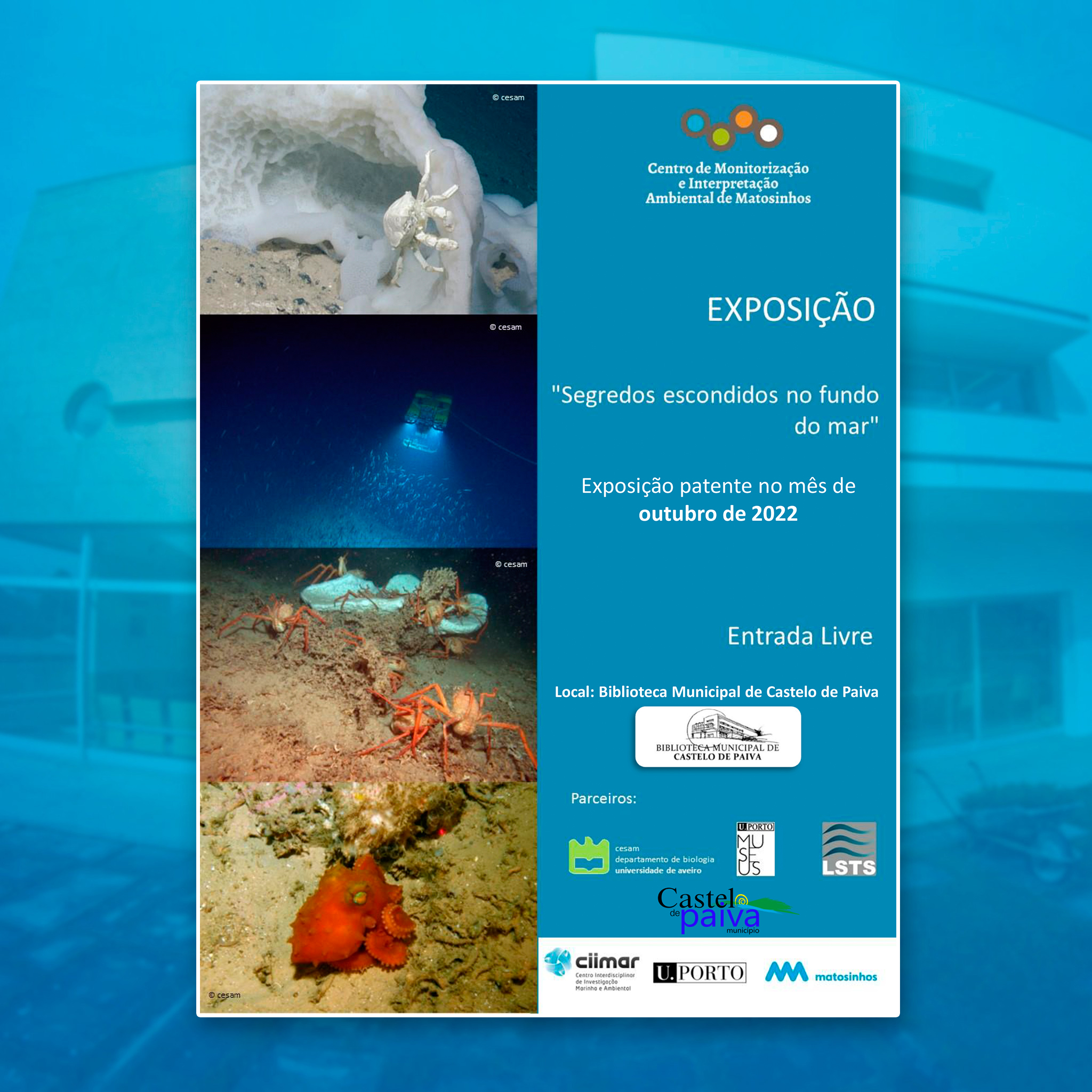 Até ao final do mês de outubro, está em exposição na Biblioteca Municipal de Castelo de Paiva, os “Segredos Escondidos do Fundo do Mar”, promovido pelo Centro de Monitorização e Interpretação Ambiental de Matosinhos.