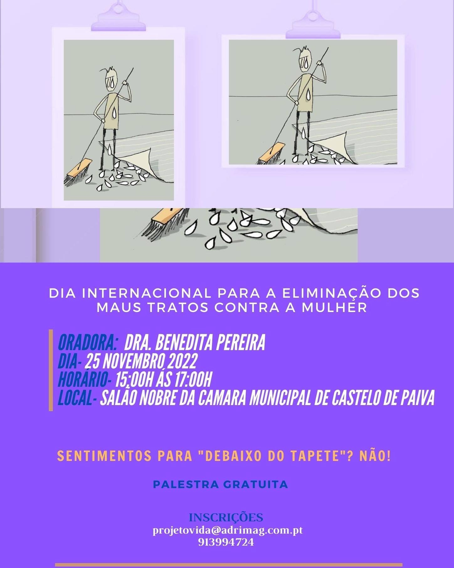 O Dia Internacional para a Eliminação dos Maus-Tratos contra as Mulheres, é assinalado a 25 de novembro e o CLDS4G-Projeto VIDA, cuja entidade coordenadora é a ADRIMAG, promove em parceria com a CPCJ e a Câmara Municipal de Castelo de Paiva, uma palestra, no âmbito da ação “Genealogia Positiva”.