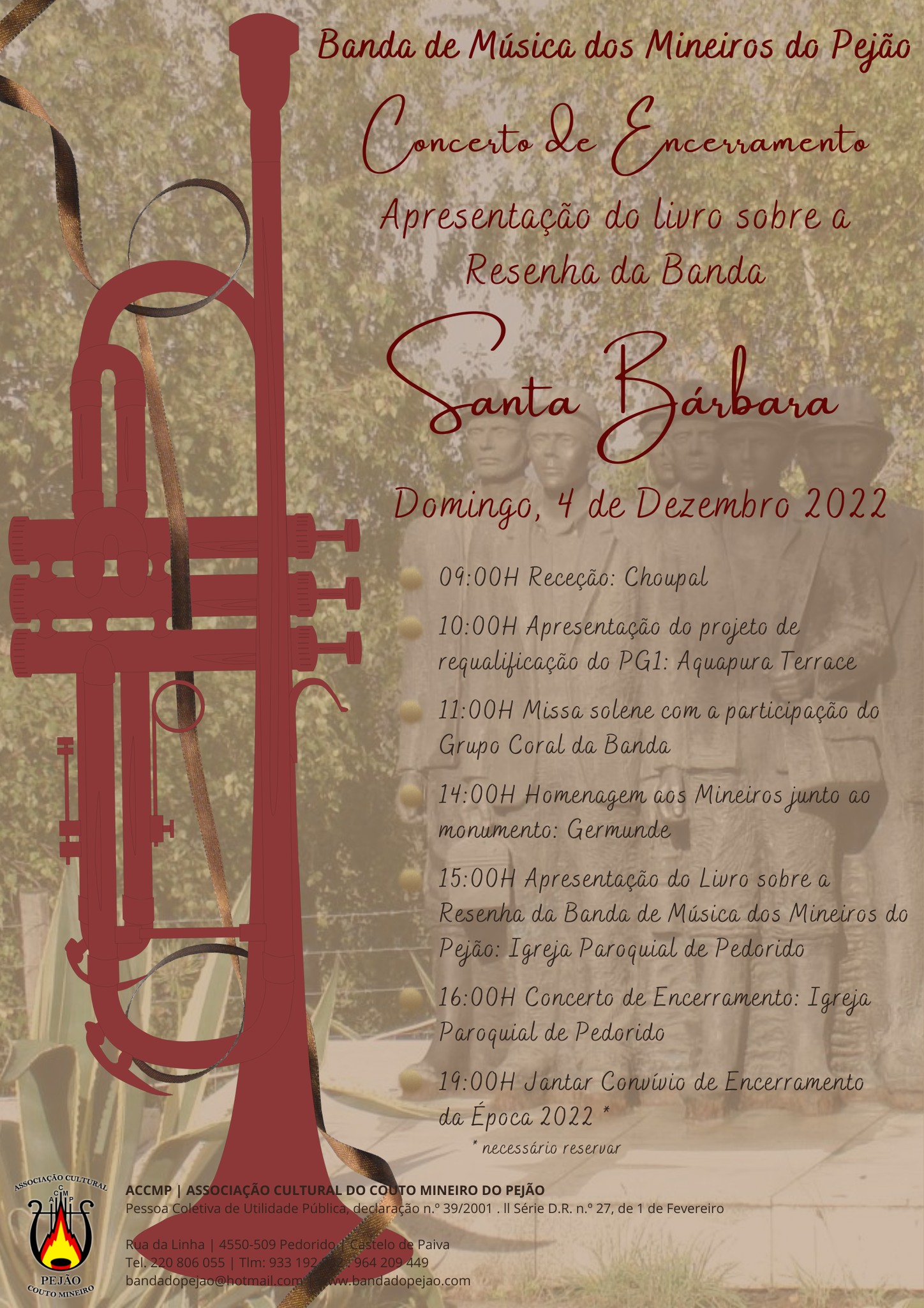 A partir das 14h, realiza-se uma Homenagem aos Mineiros, junto ao monumento em Germunde, onde se segue a apresentação do livro sobre a Resenha da Banda de Música dos Mineiros do Pejão, na Igreja Paroquial de Pedorido, este que é um local que irá acolher também o Concerto de Encerramento da temporada de 2022.