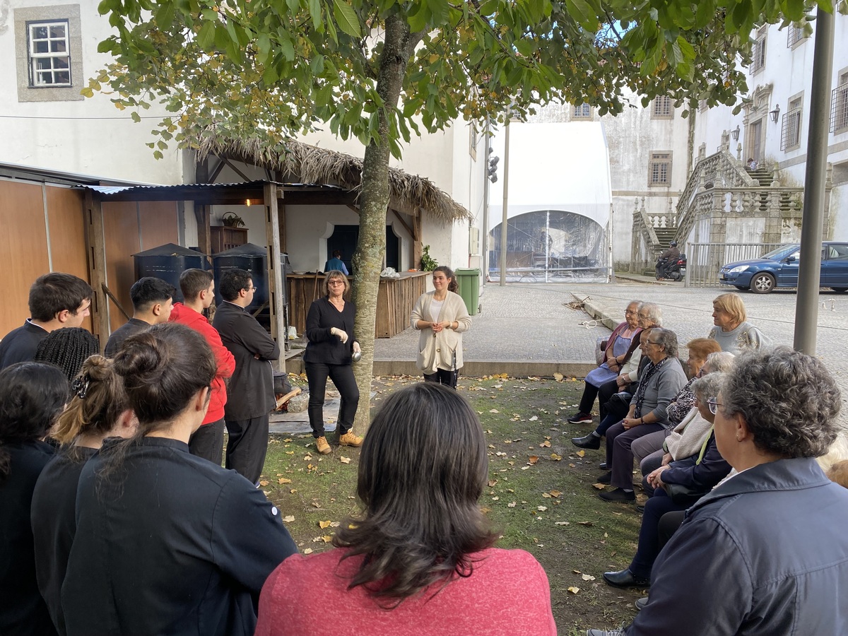 Os alunos do 12º ano do Curso Profissional de Cozinha/Pastelaria participaram no primeiro encontro com um grupo de idosos residentes em várias aldeias do município de Arouca, no âmbito do projeto “(Des)envelhecer”, promovido pela Agrupamento de Escolas de Arouca e Câmara Municipal de Arouca.