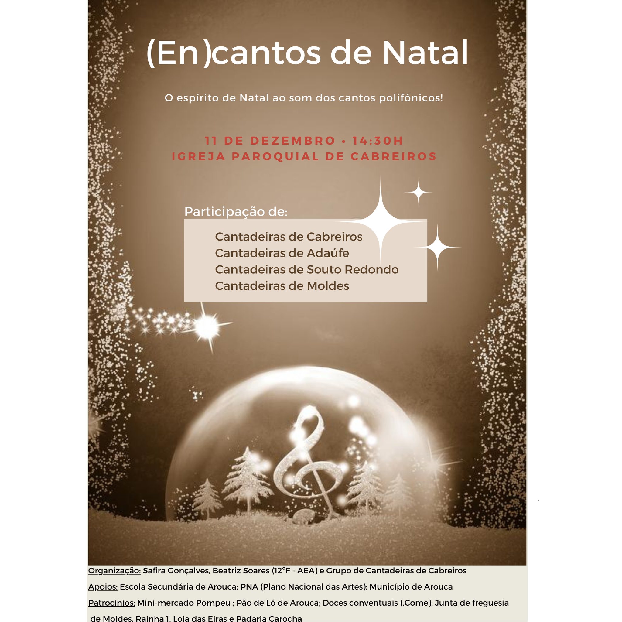 Amanhã, dia 11 de dezembro pelas 14h30, na aldeia de cabreiros vai decorrer o evento “(EN)cantos de Natal”. A iniciativa promovida pelas alunas do curso Profissional de Animação Sociocultural Beatriz Soares e Safira Gonçalves, no âmbito da realização do seu projeto final (Prova de Aptidão Profissional), é aberto a toda a comunidade. O mesmo tem como objetivo promeover o convívio intergeracional, combatendo o islolamento social dos séniores da comunidade, fomentar o espírito voluntário da população, principalmente dos jovens, e aumentar a cidadania ativa.