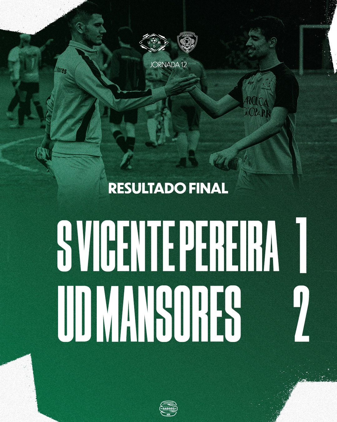 A UD Mansores venceu, ao fim de oito jogos, a ARC S.Vicente Pereira por 2-1. Destes oito jogos, está incluído um para Taça Pecol Powertools, em que perdeu por 4-2 frente ao RD Águeda.