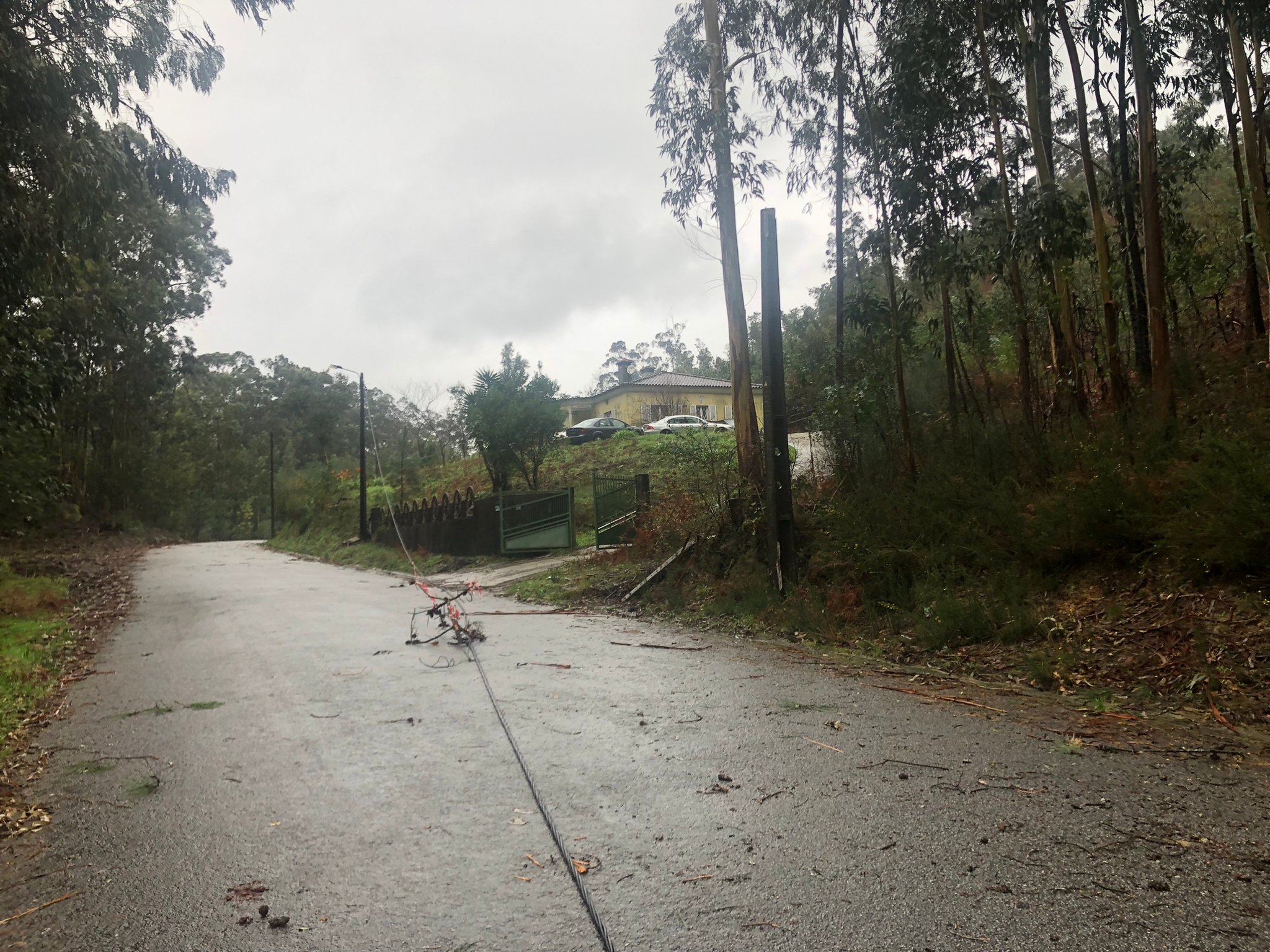 Ontem, dia 1 de janeiro de 2023, a queda de uma árvore de médio porte, durante a madrugada, em Escariz, provocou danos num poste da rede elétrica, e a consequente queda de um cabo de eletricidade sobre a via.