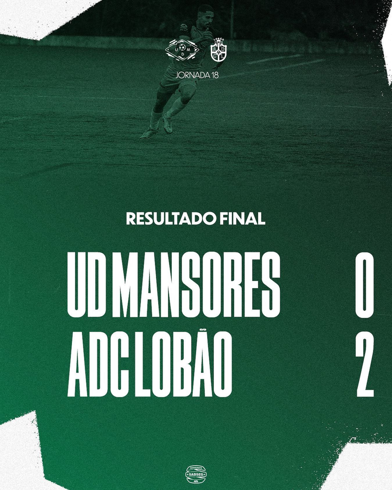 A contar para a jornada 18, do campeonato Sabseg, a UD Mansores perdeu ontem, dia 5 de fevereiro, por 0-2 com a ADC Lobão.