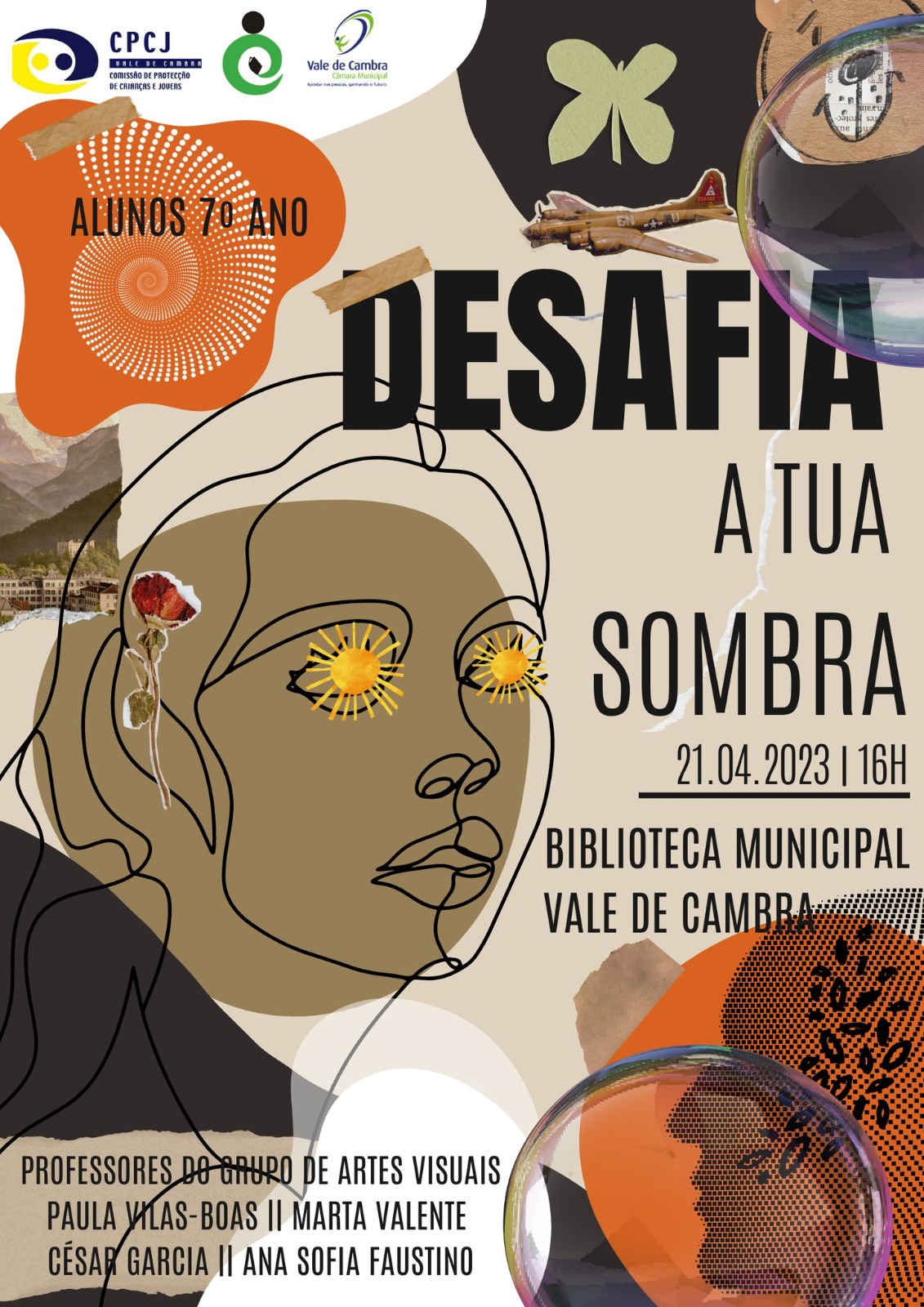 No próximo dia 21 de abril, pelas 16h, a Biblioteca Municipal de Vale de Cambra receberá a exposição “Desafia a tua Sombra”, organizada pela CPCJ de Vale de Cambra, em conjunto com o Grupo de Artes Visuais do Agrupamento de Escolas do Búzio e a Câmara Municipal de Vale de Cambra.