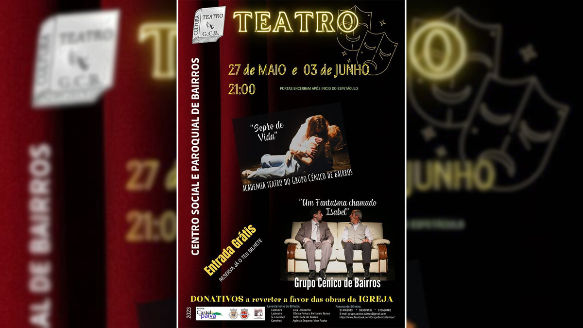 As peças de teatro a apresentar serão “Sopro de Vida” e “Um Fantasma Chamado Isabel”. Todos os donativos reverterão a favor das obras da igreja de S. Miguel, em Bairros.