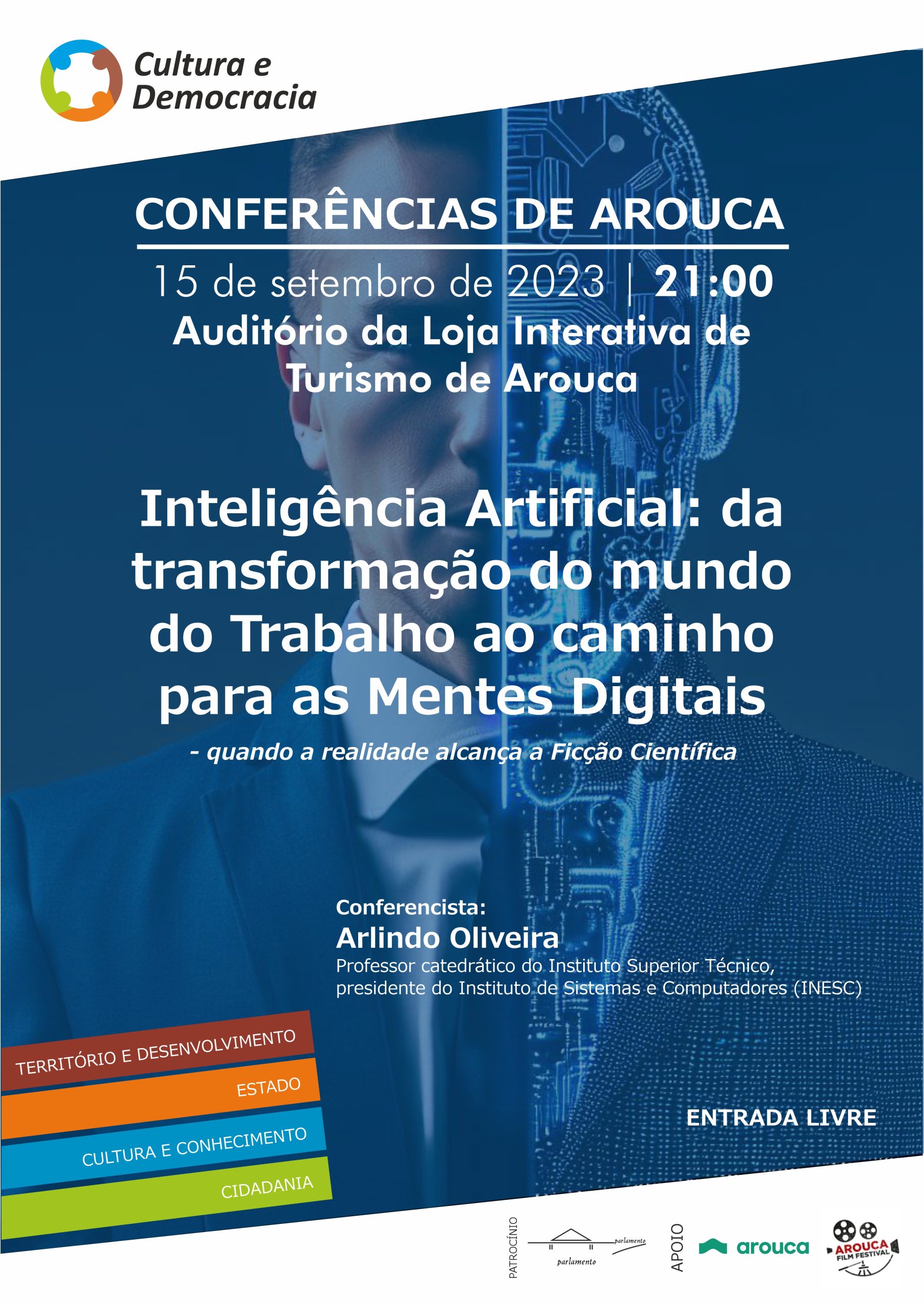 No próximo dia 15 de setembro, por volta das 21h00, o Círculo Cultura e Democracia irá promover nova sessão das “Conferências de Arouca”. O professor Arlindo Oliveira, catedrático do IST, presidente do INESC e especialista em tecnologias de IA, irá falar sobre o tema Inteligência Artificial: da transformação do mundo do Trabalho ao caminho para as Mentes Digitais – quando a realidade alcança a ficção científica.