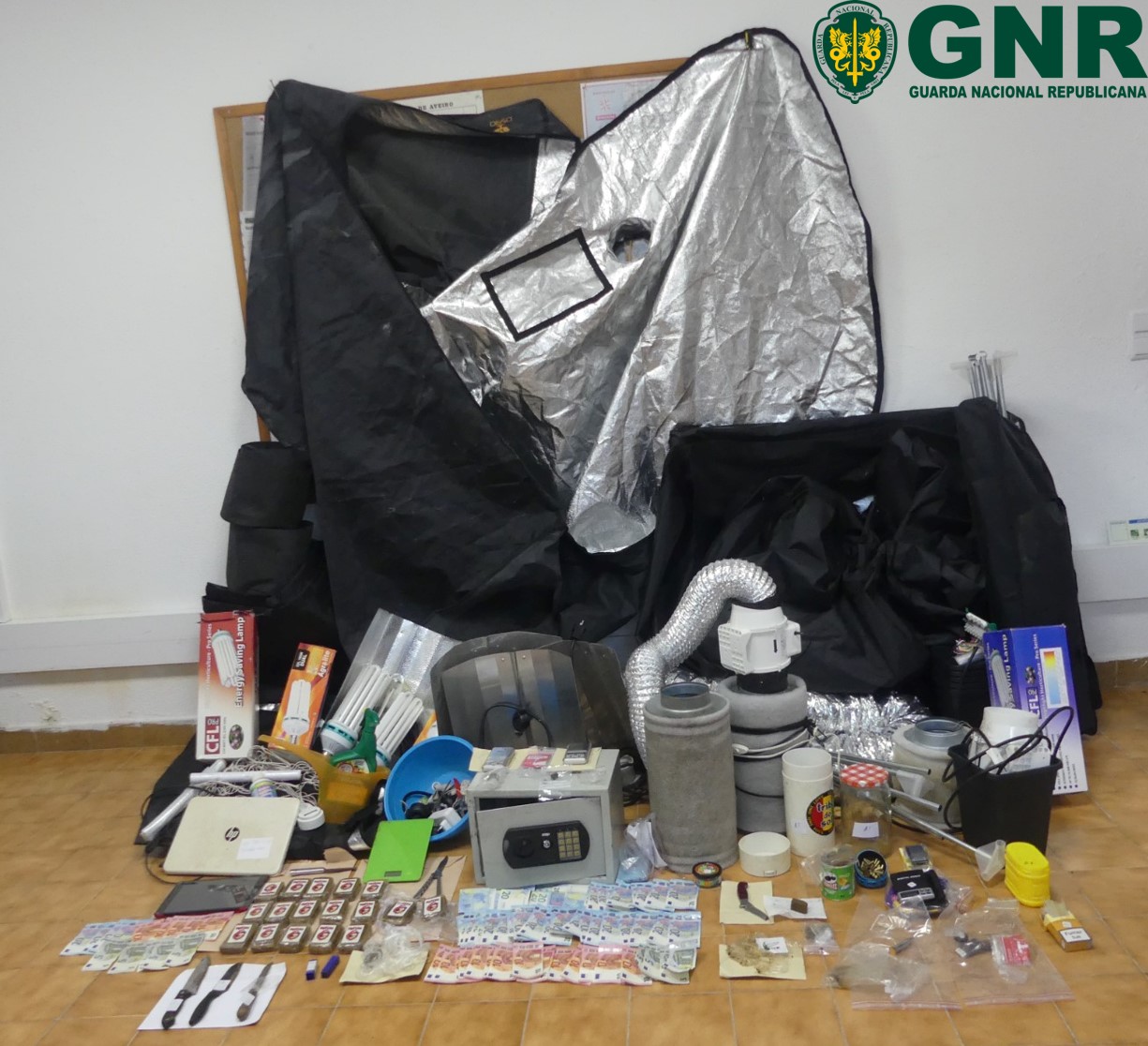 No decorrer das diligências policiais, os militares da Guarda deram cumprimento a seis mandados de buscas domiciliárias e 11 não domiciliárias, de entre as quais, dez em veículos e uma em estabelecimento, que culminaram na apreensão do seguinte material: