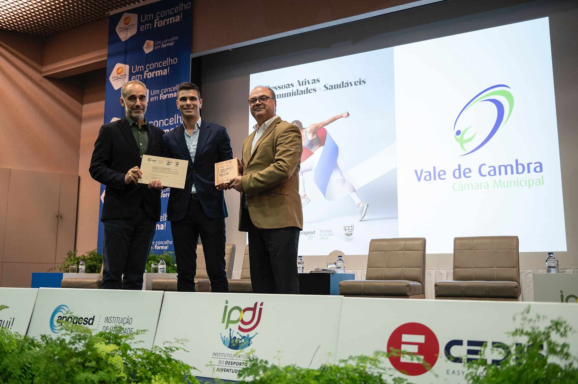 Na Gala integrada no XXIV Congresso Nacional de Gestão de Desporto”, que este ano ocorreu no dia 23 de novembro, na Póvoa de Varzim, com o tema “Governança na Gestão do Desporto, Inovação e Boas Práticas” o Município de Vale de Cambra foi reconhecido como “Município Fundador do Programa Concelhos Ativos”. Isto ocorreu no seguimento do Programa Nacional que visa a certificação de políticas e iniciativas públicas locais no âmbito da atividade física e desporto, com o cumprimento das principais orientações internacionais para o setor. O galardão foi entregue pelo presidente do IPDJ – Instituto Português do Desporto e Juventude, I.P., Vítor Pataco e pelo presidente da Aposged Fernando Parente.