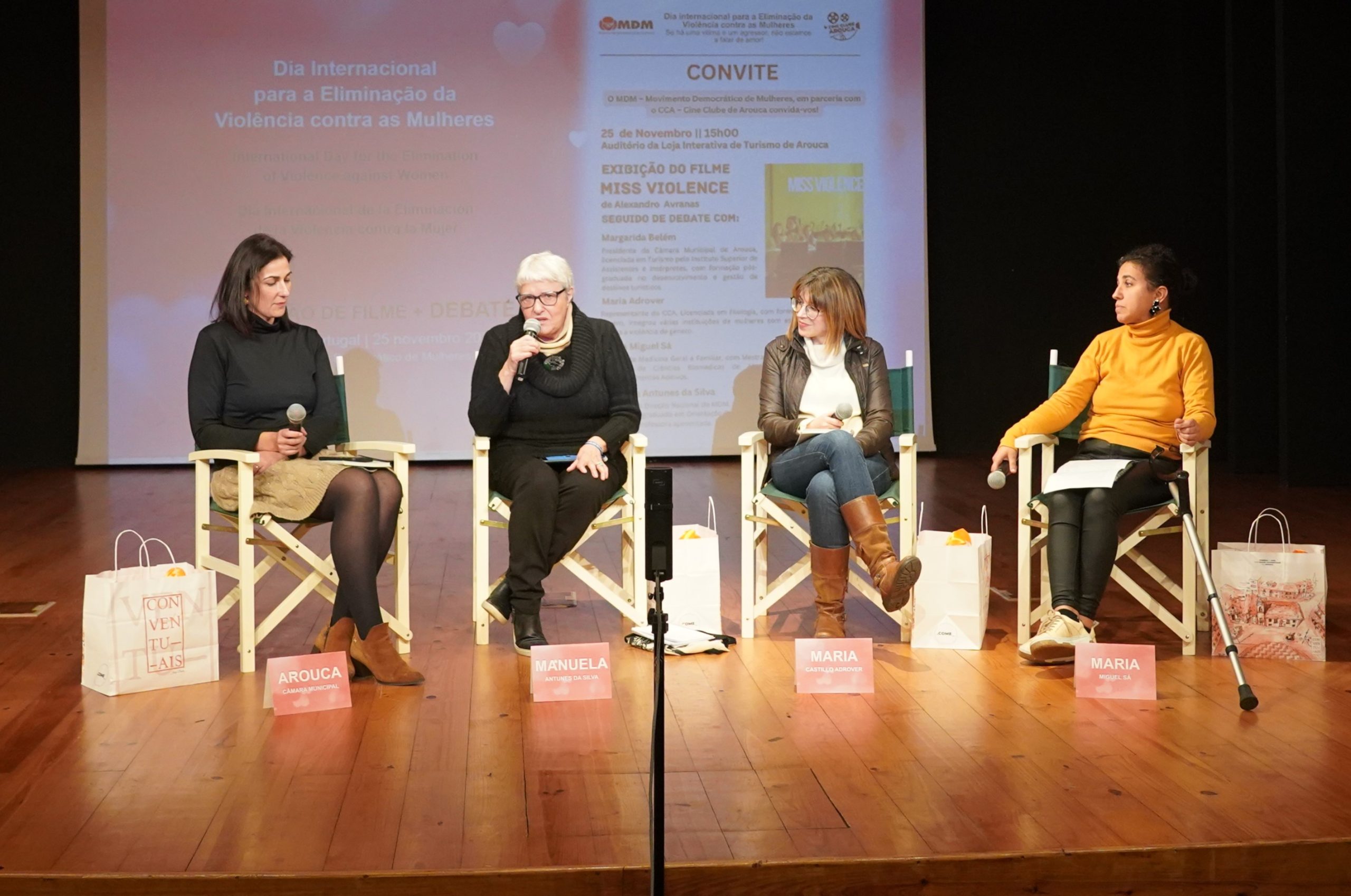 No âmbito do dia Internacional pela Eliminação da Violência Contra as Mulheres, que se comemora a 25 de novembro, o MDM – Movimento Democrático de Mulheres, em parceria com o Cine Clube de Arouca e o apoio do município, assinalaram a data com a realização de uma ação de sensibilização na Loja Interativa de Turismo. Durante a mesma, foi exibida a apresentação do filme “Miss Violence” de Alexandro Avranas, seguido de debate. A mesa foi composta por Manuela Silva do MDM, Maria Adrover do Cine Clube, Maria Miguel Sá – médica, e Cláudia Oliveira da Câmara Municipal, que fizeram a introdução ao tema, seguindo-se o debate que, apesar de ter uma parca assistência foi bastante participado.