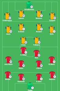 Thiago (GR), M.Rocha(DF), Moses, P.Santos, (MD) Bukia, Michel, Trezza, Puche, Lawal(AT)