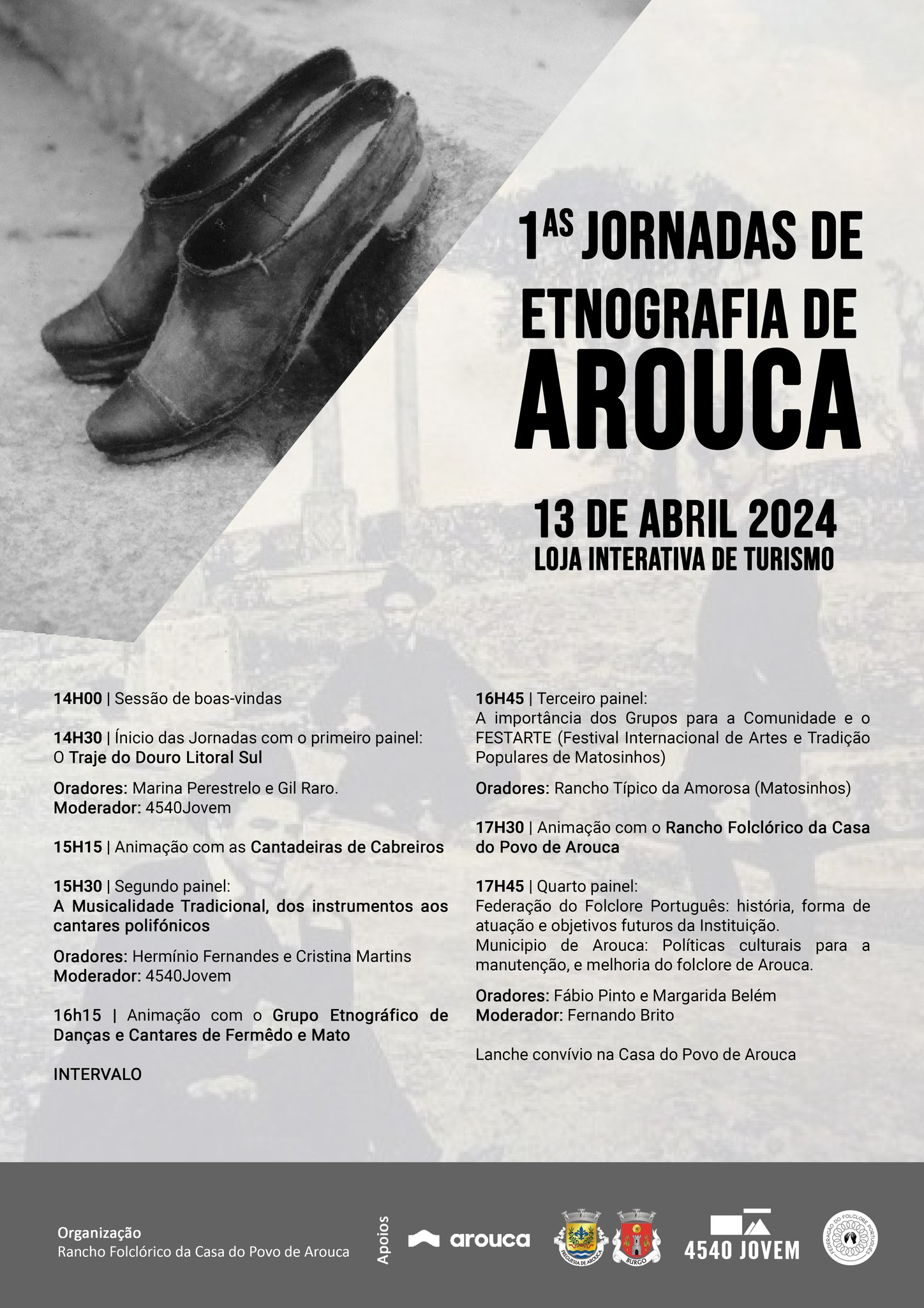 No próximo sábado, decorrem na Loja Interativa de Turismo, e promovidas pelo Rancho Folclórico da Casa do Povo de Arouca, as primeiras Jornadas de Etnografia de Arouca.