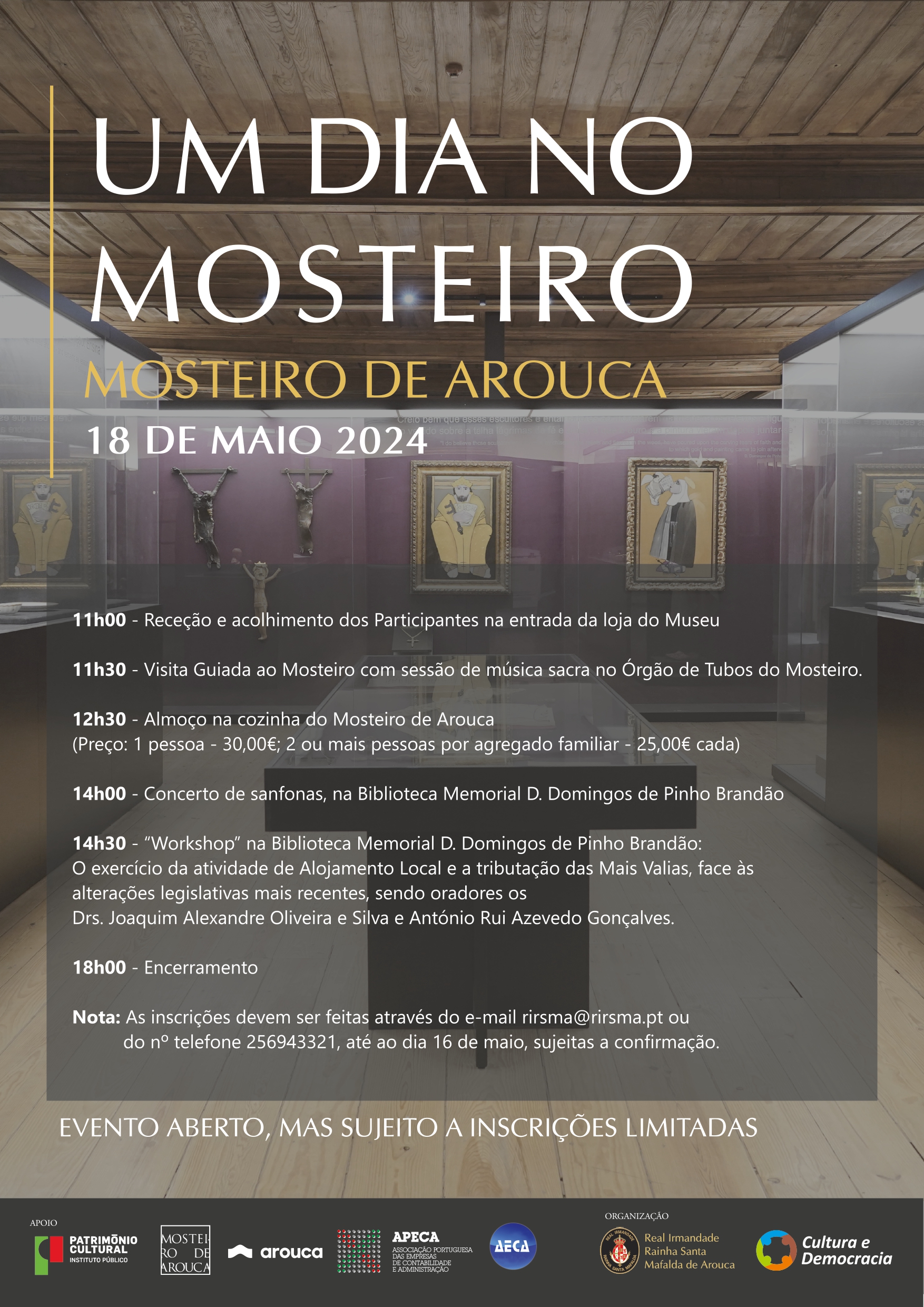 Intitulado “Um dia no Mosteiro de Arouca” a iniciativa é uma colaboração da Real Irmandade Rainha Santa Mafalda de Arouca com a Associação Círculo Cultura e Democracia, e consiste num conjunto de atividades a decorrer no mosteiro de Arouca durante o dia 18 de maio, com início às 11 horas.