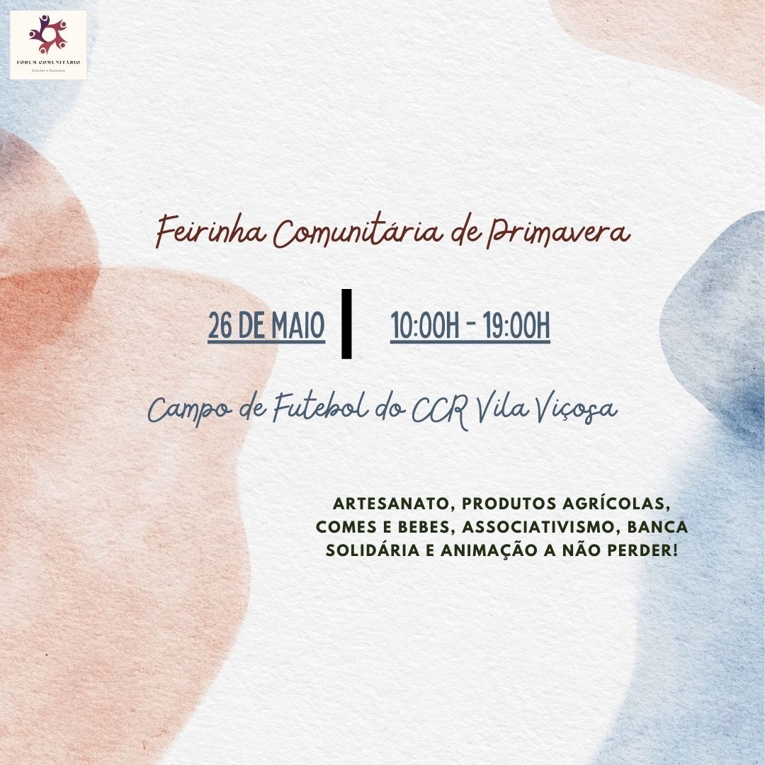 Organizada pela Fórum Comunitário de Canelas e Espiunca, a Feirinha comunitária de Primavera terá lugar no campo de futebol do Centro Cultural e Recreativo de Vila Viçosa das 10 às 19 horas.
