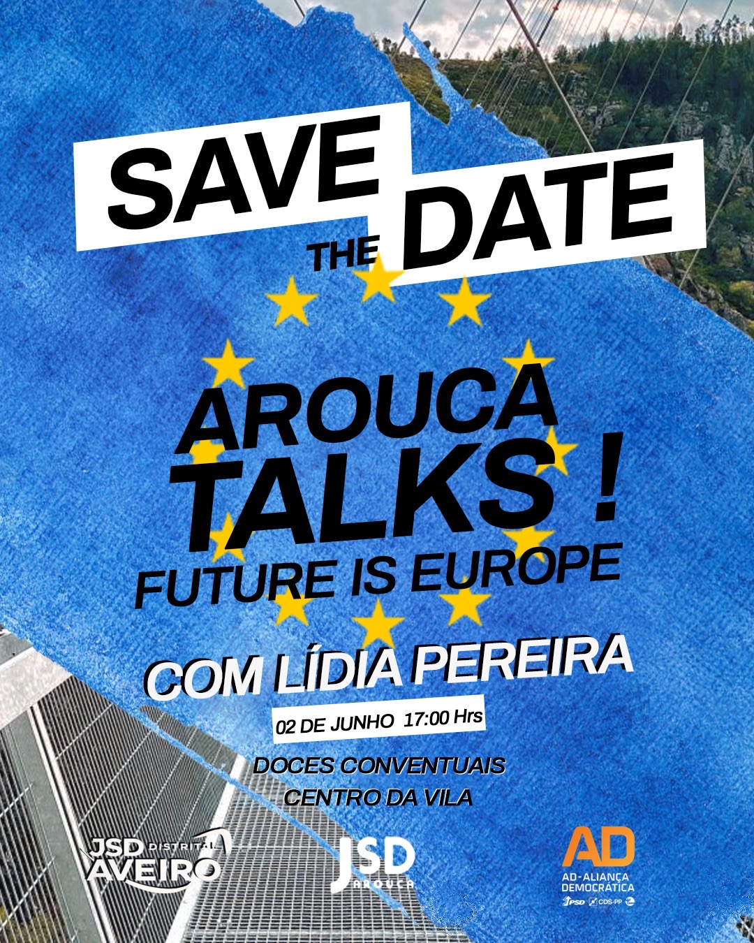 As estruturas partidárias da JSD de Arouca e da JSD Distrital de Aveiro organizam o 2º Arouca Talks, agora com o mote da Europa. A iniciativa decorre no próximo domingo, 2 de junho, na loja dos Doces Conventuais de Arouca, situada na praça Brandão Vasconcelos.