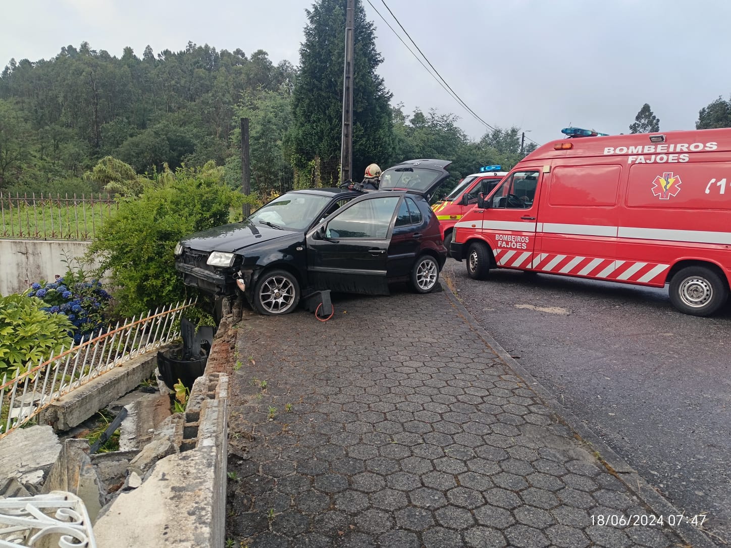 Hoje, pelas 7h25, hora do alerta, ocorreu um despiste de um veículo ligeiro de passageiros, no Lugar da Pedra Má (EN327), em Cesar. Do acidente resultou um ferido leve, um homem de 19 anos, que foi assistido no local pela equipa EPH, e transportado para a ULS-Feira. Estiveram no local 2 veículos e 7 operacionais da Corporação de Bombeiros de Fajões, e a GNR de Cesar.