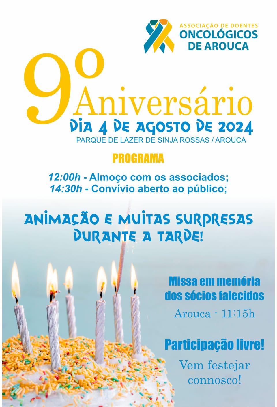A associação de doentes oncológicos de Arouca celebra o seu 9º aniversário no dia 4 de agosto, com atividades abertas a toda a comunidade, a decorrer no parque de lazer de Sinja, em Rossas.