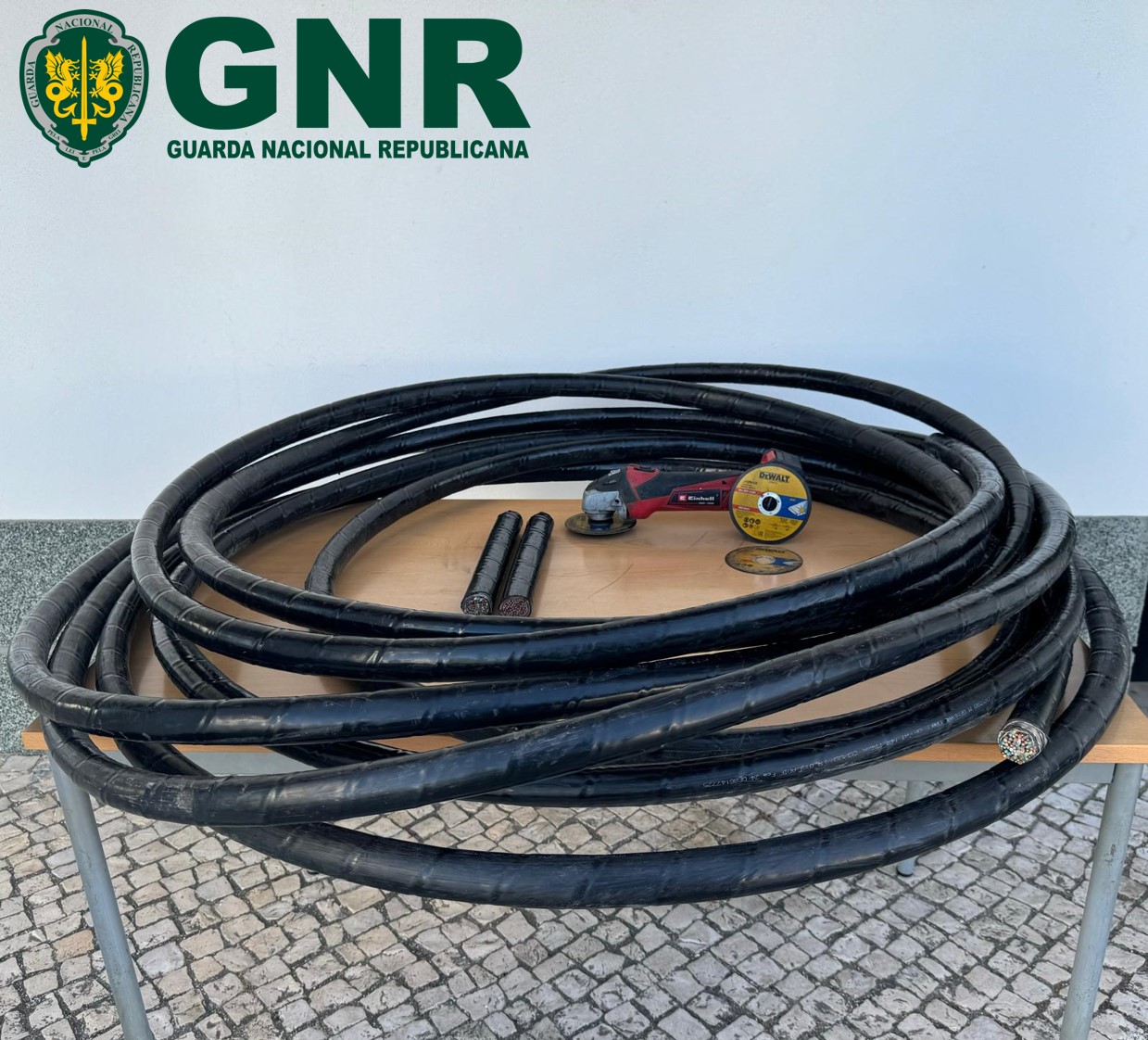 Na sequência de uma fiscalização rodoviária, os militares da Guarda verificaram que existiam diversos metros de cabo de cobre e uma rebarbadora na bagageira de um veículo. No âmbito das diligências policiais foi possível apurar que os cabos que se encontravam na posse do suspeito tinham sido alvo de furto num caminho térreo paralelo à linha ferroviária de comboios, na localidade da Pampilhosa, no concelho da Mealhada.