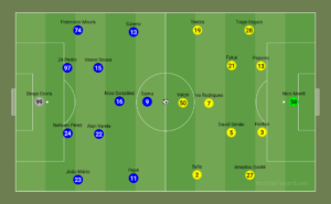 Contudo, na reta final do primeiro tempo, surgiu um revés para os Lobos de Arouca: após um primeiro amarelo totalmente desnecessário aos 32’(ao impedir Diogo Costa de bater rapidamente um pontapé de baliza), Yalçin viu o segundo amarelo aos 43’ por pisar Nico. Este contratempo acabaria por ser um mau presságio do que estaria para vir.